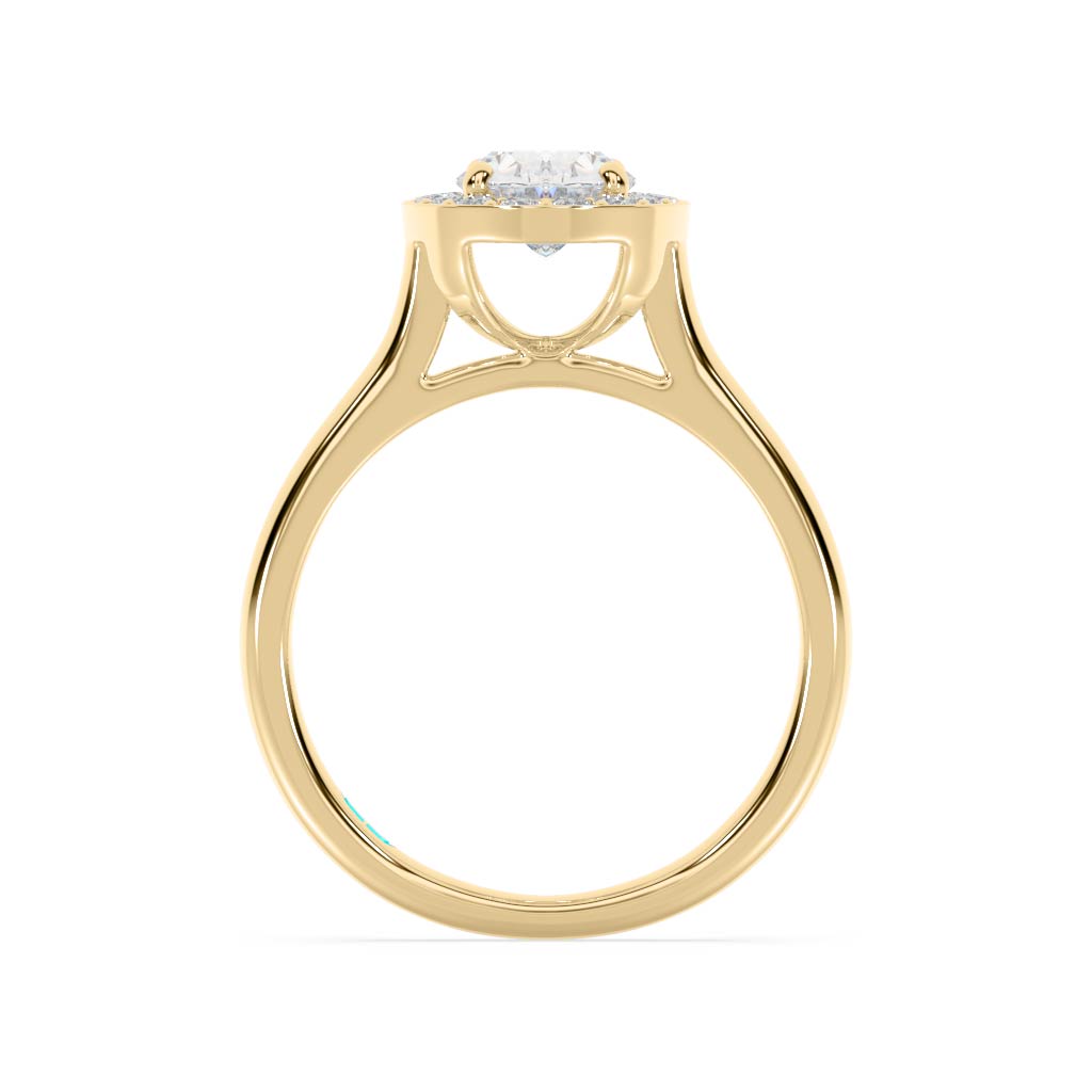 \n Oval diamond (1.00ct shown)\n 16 x 0.015ct round brilliant cut diamonds bead set into halo\n Total diamond weight = 0.24ct\n (based on 1.0ct centre diamond as shown, not including centre diamond)\n Basket style halo supports\n Half round band profile\n 2.20mm wide band\n