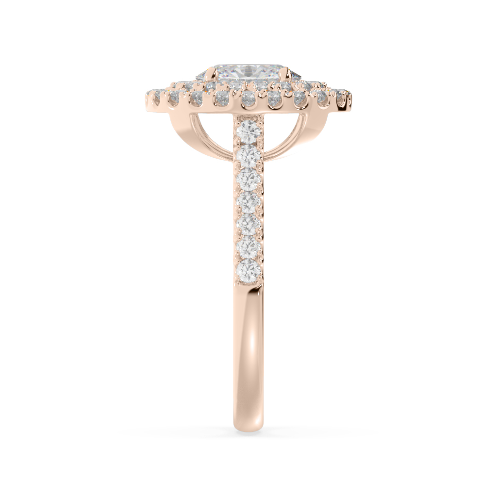 \n Oval cut diamond (1.00ct shown)\n 38 x 0.015ct round brilliant cut diamonds shared claw set into double halo\n Total diamond weight = 0.57ct\n (based on 1.0ct centre diamond as shown, not including centre diamond)\n 14 x 0.015ct round brilliant cut diamonds shared claw set into shoulders\n Total diamond weight = 0.21ct\n Basket style halo supports\n Half round band profile\n 2.20mm wide band\n
