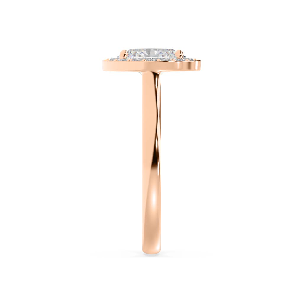 \n Oval diamond (1.00ct shown)\n 16 x 0.015ct round brilliant cut diamonds bead set into halo\n Total diamond weight = 0.24ct\n (based on 1.0ct centre diamond as shown, not including centre diamond)\n Vee style halo supports\n Half round band profile\n 2.20mm wide band\n