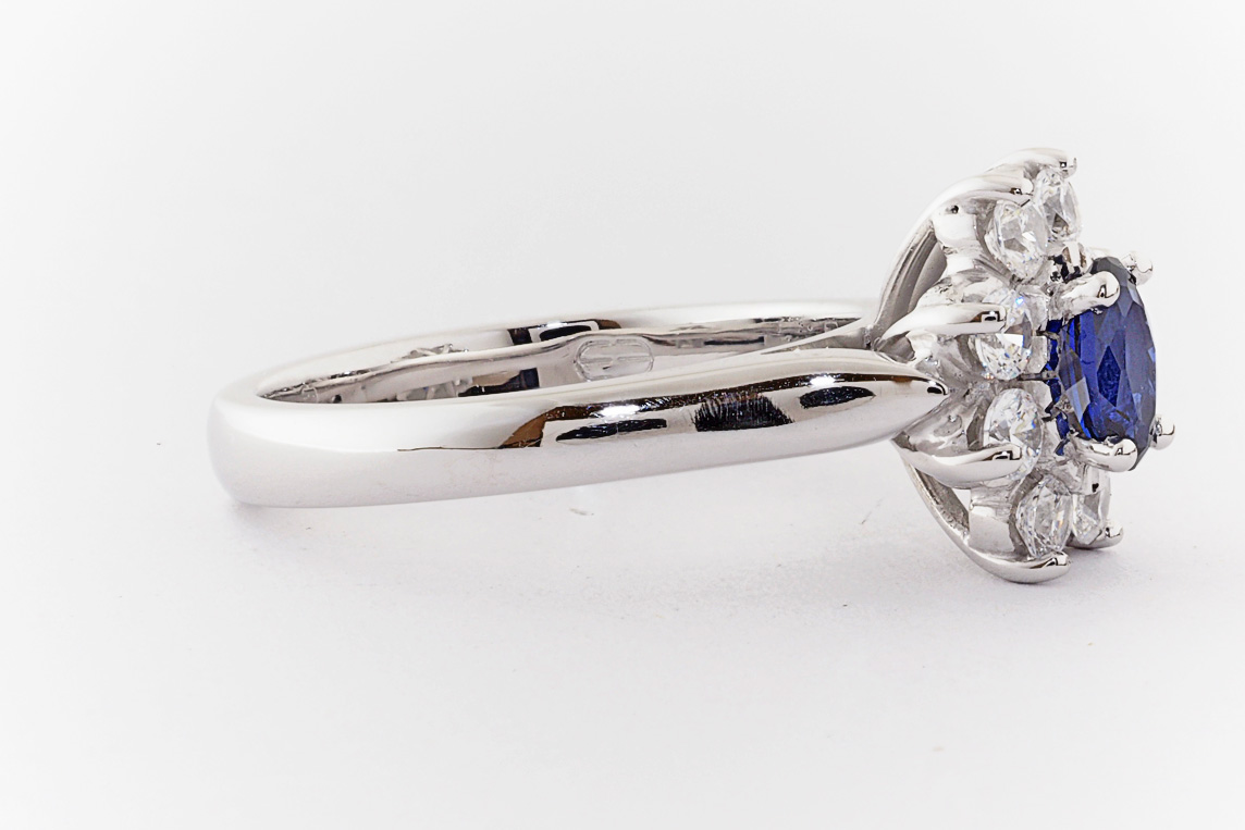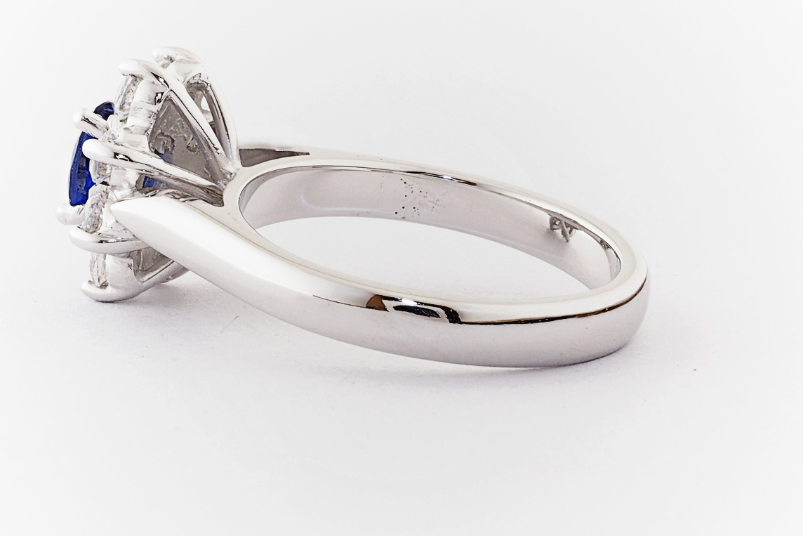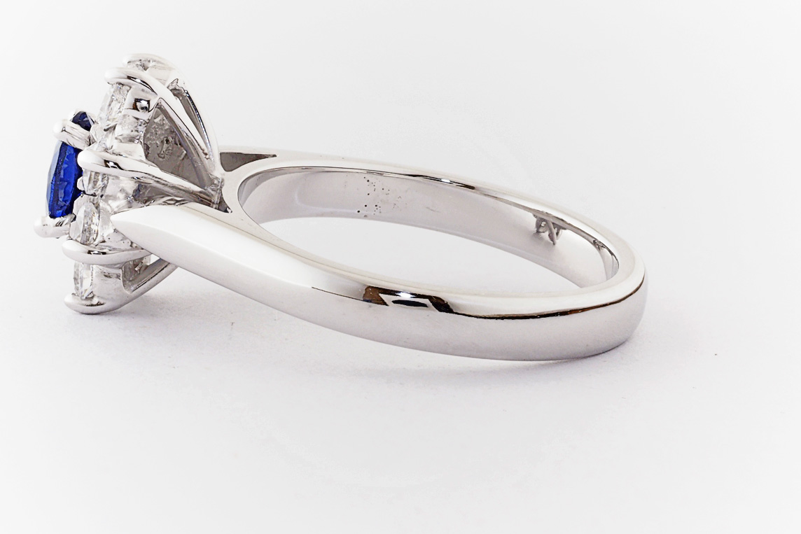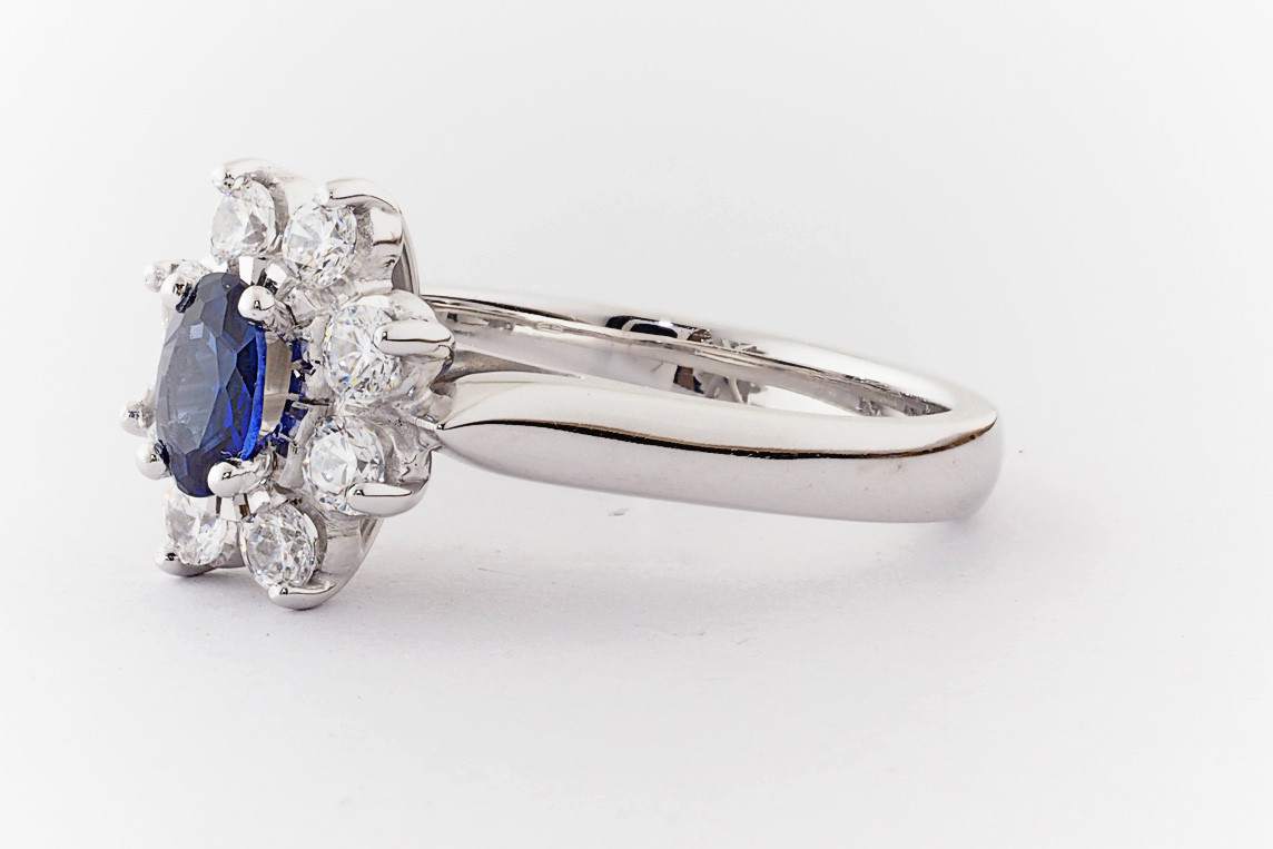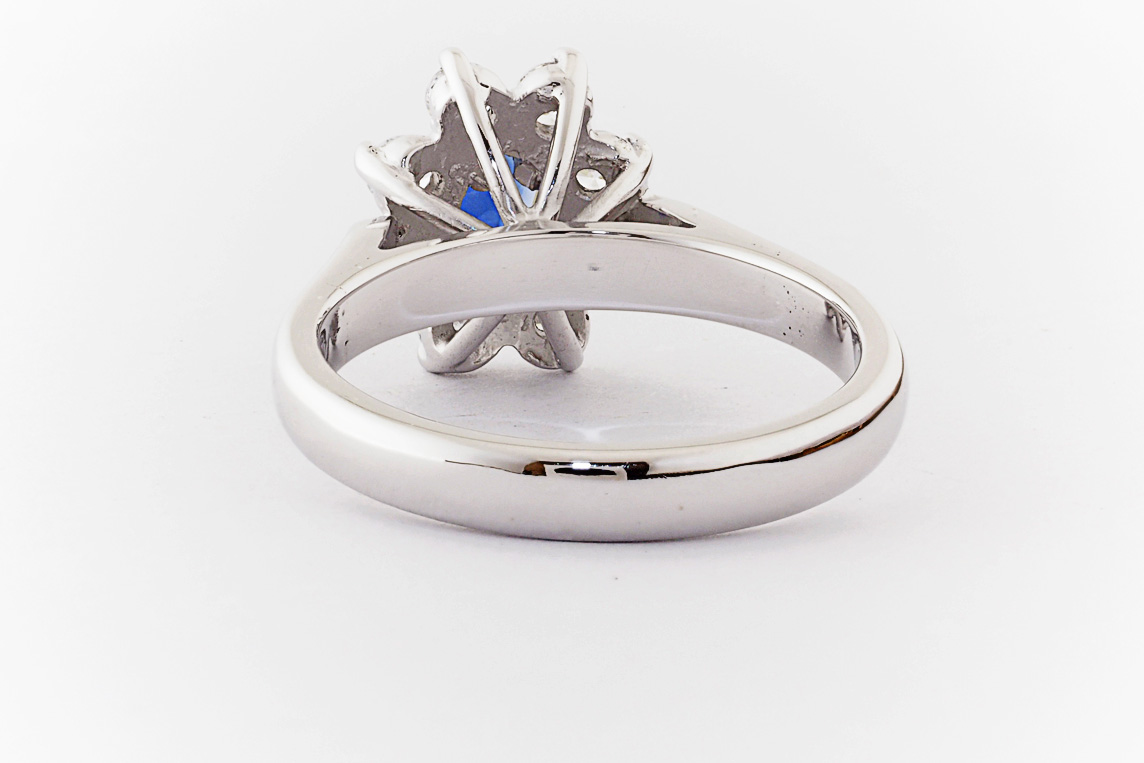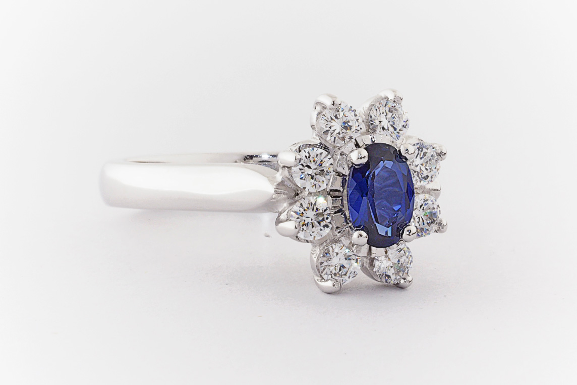 Oval sapphire and diamond halo dress ring