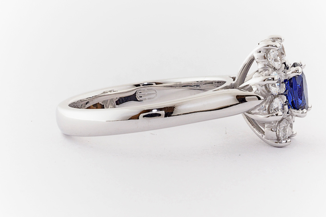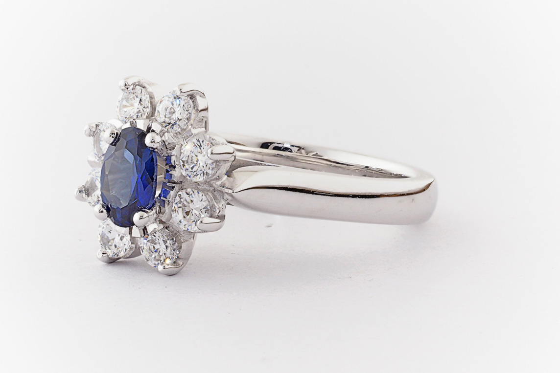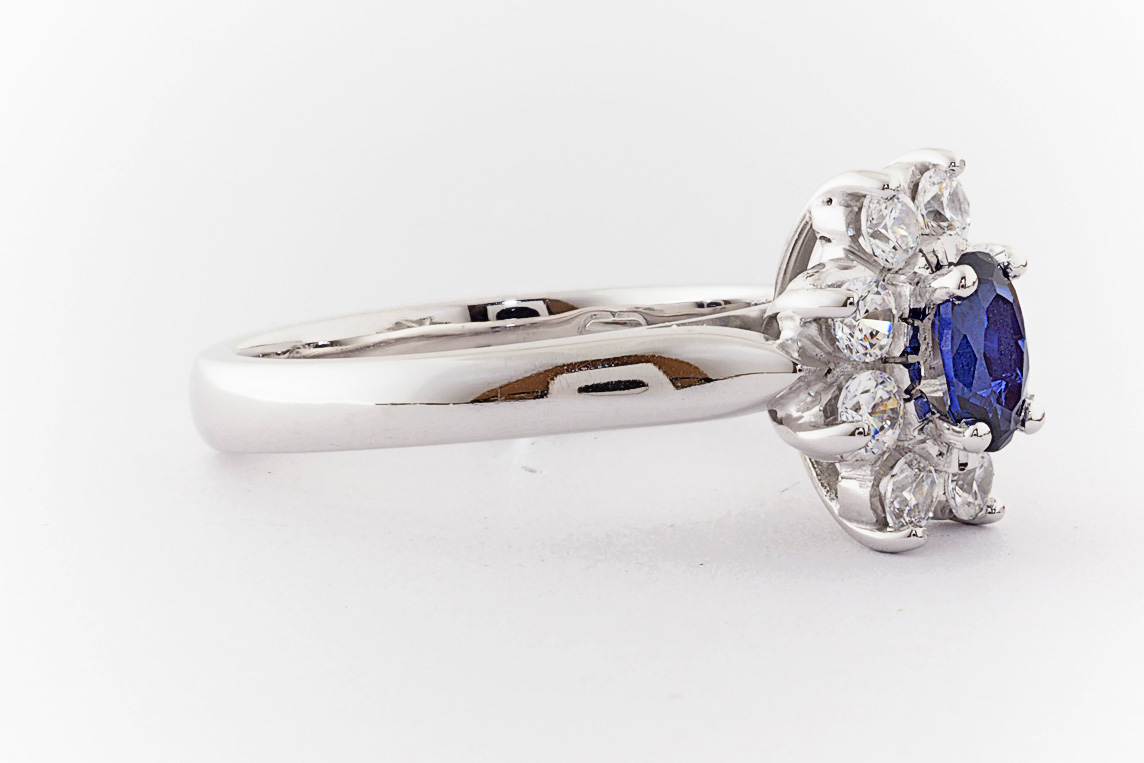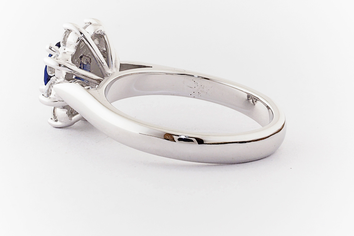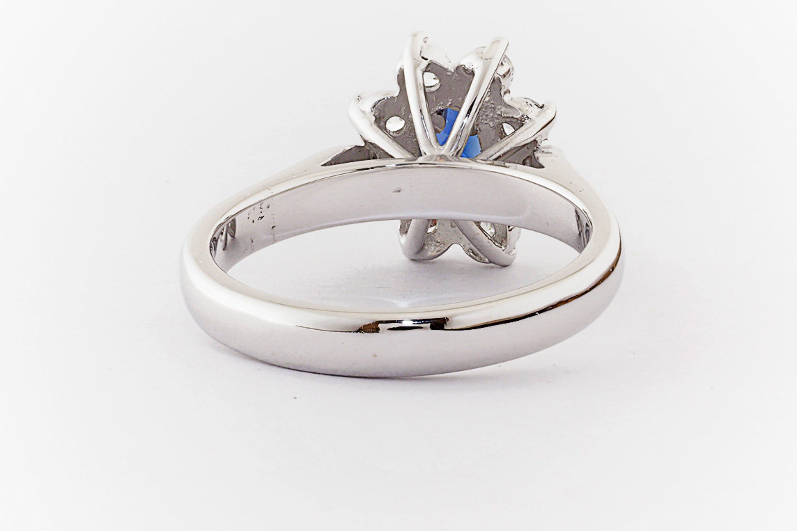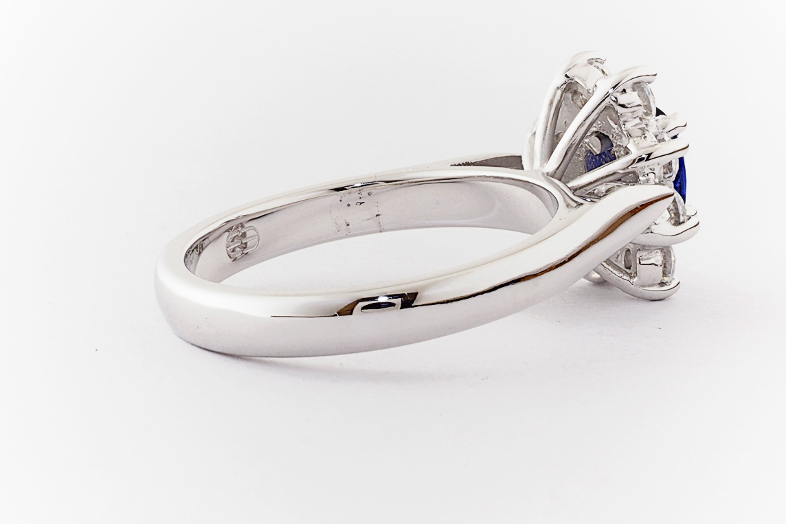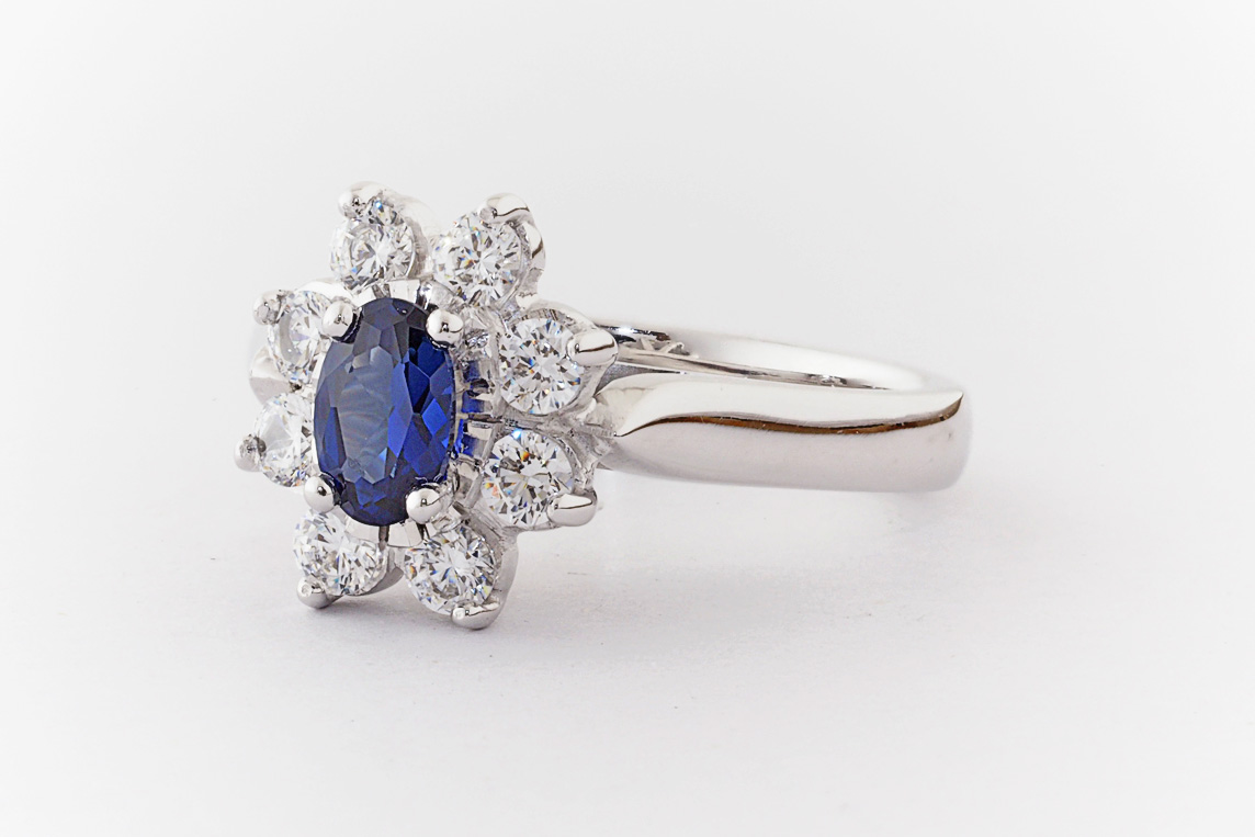 Oval sapphire and diamond halo dress ring
