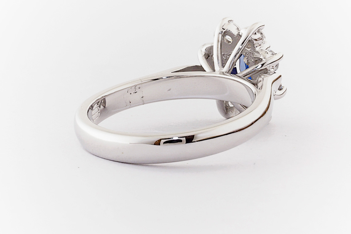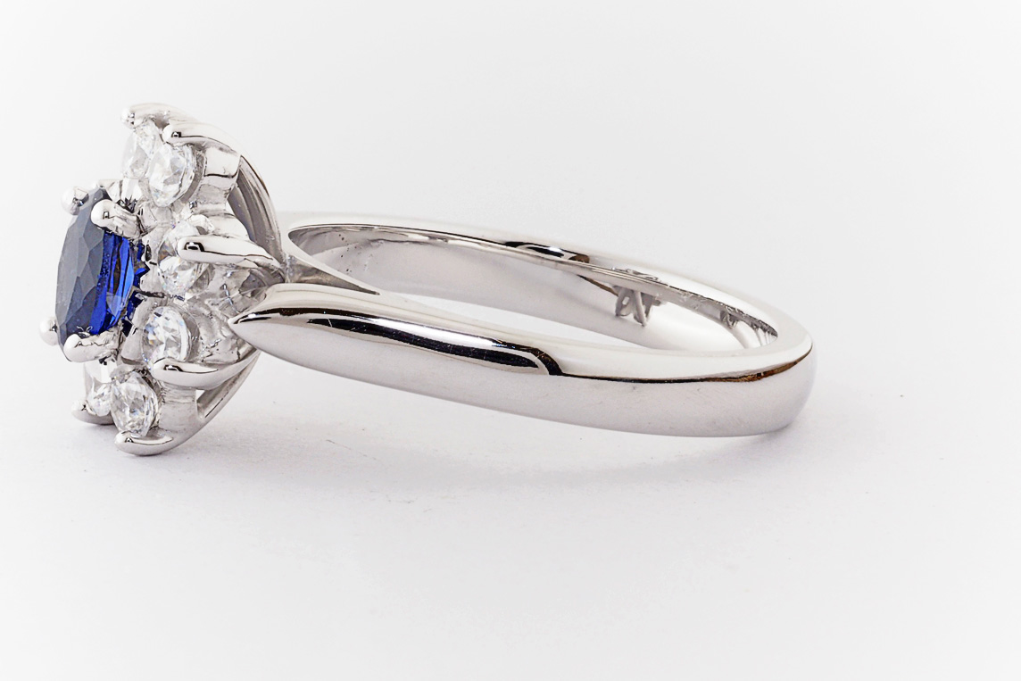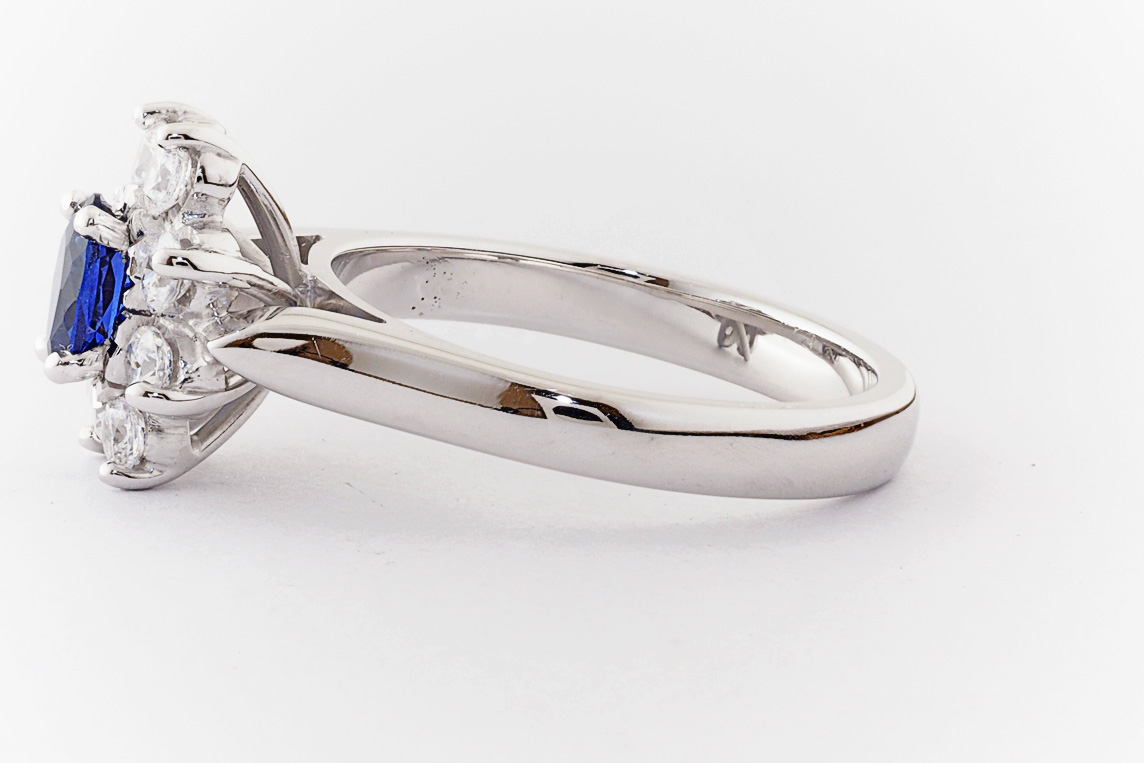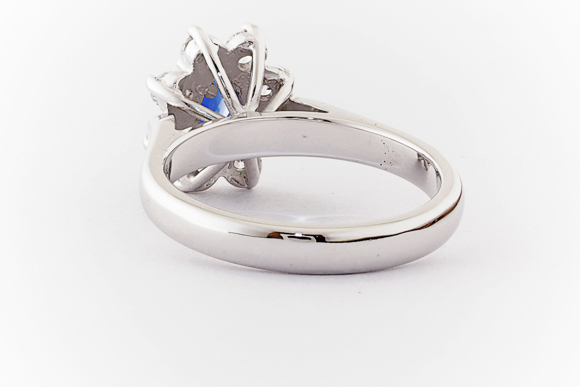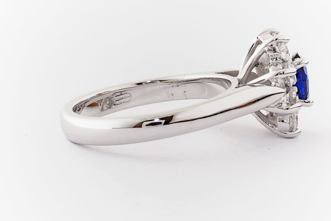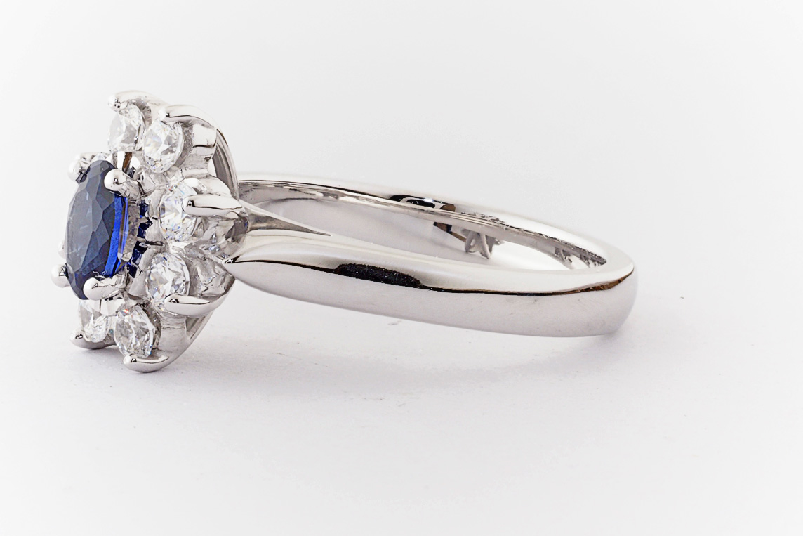 Oval sapphire and diamond halo dress ring