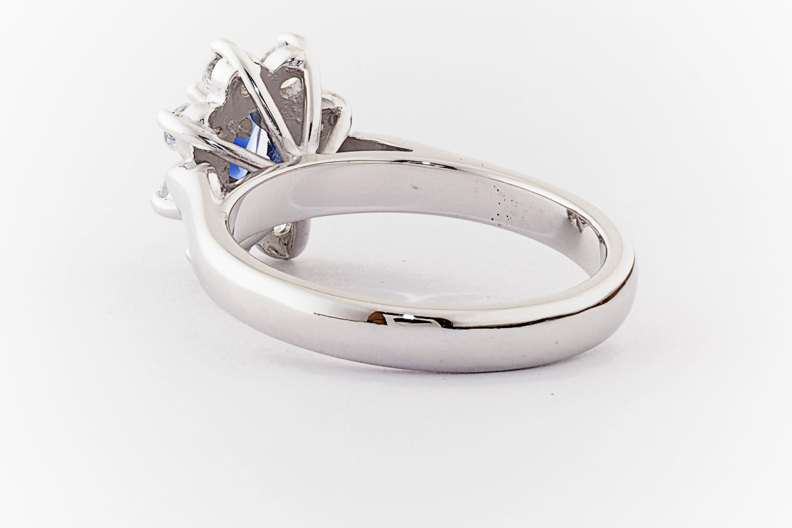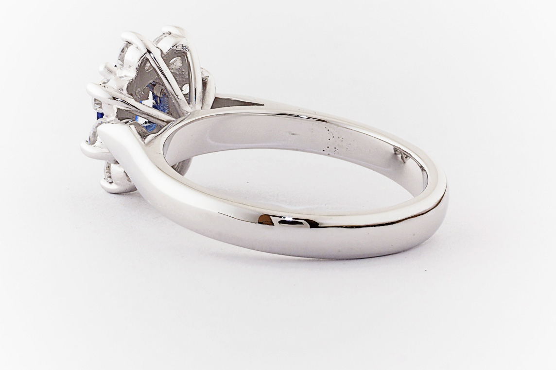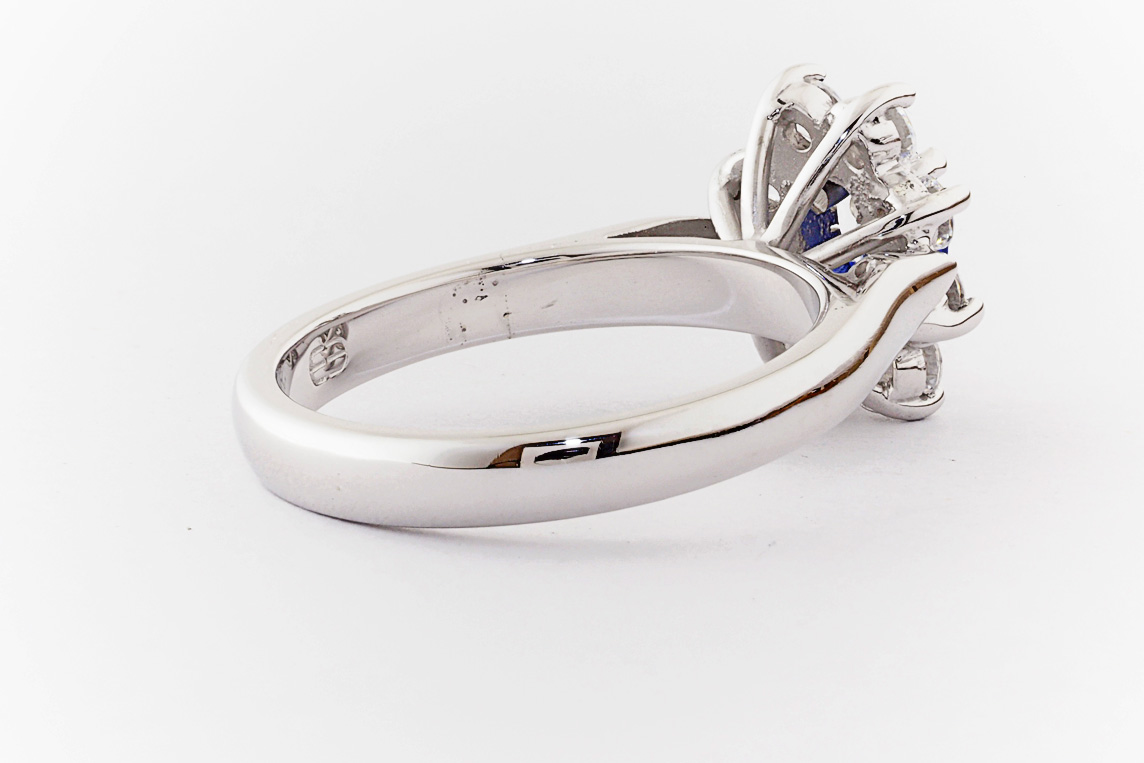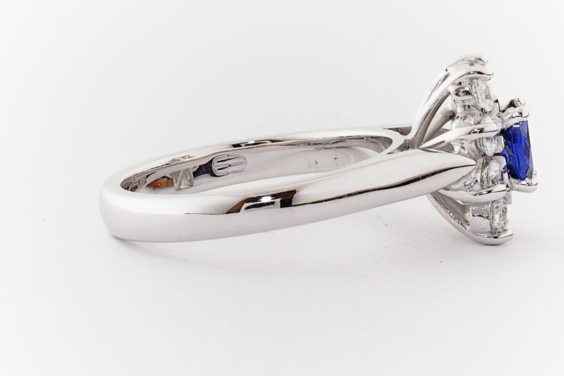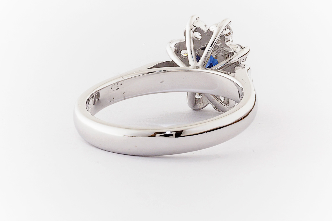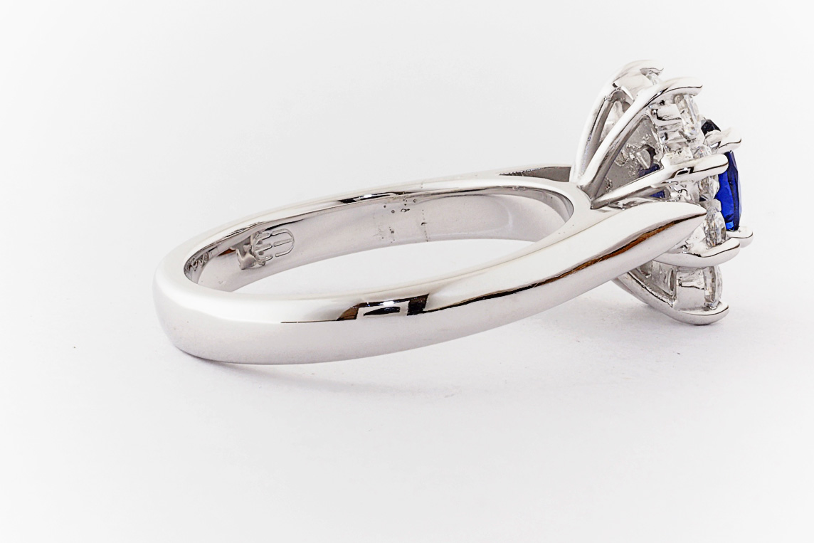Oval sapphire and diamond halo dress ring