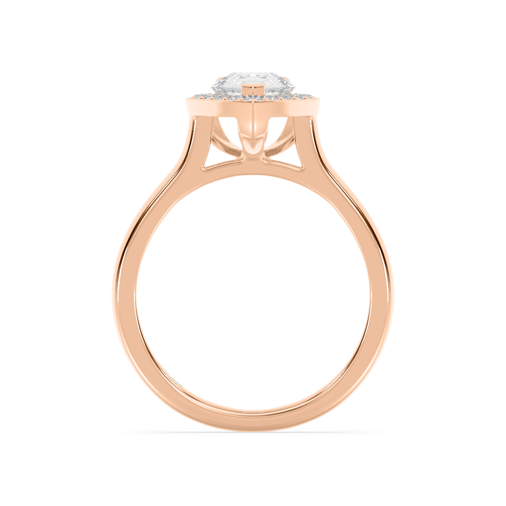 Pear shape diamond basket style halo engagement ring