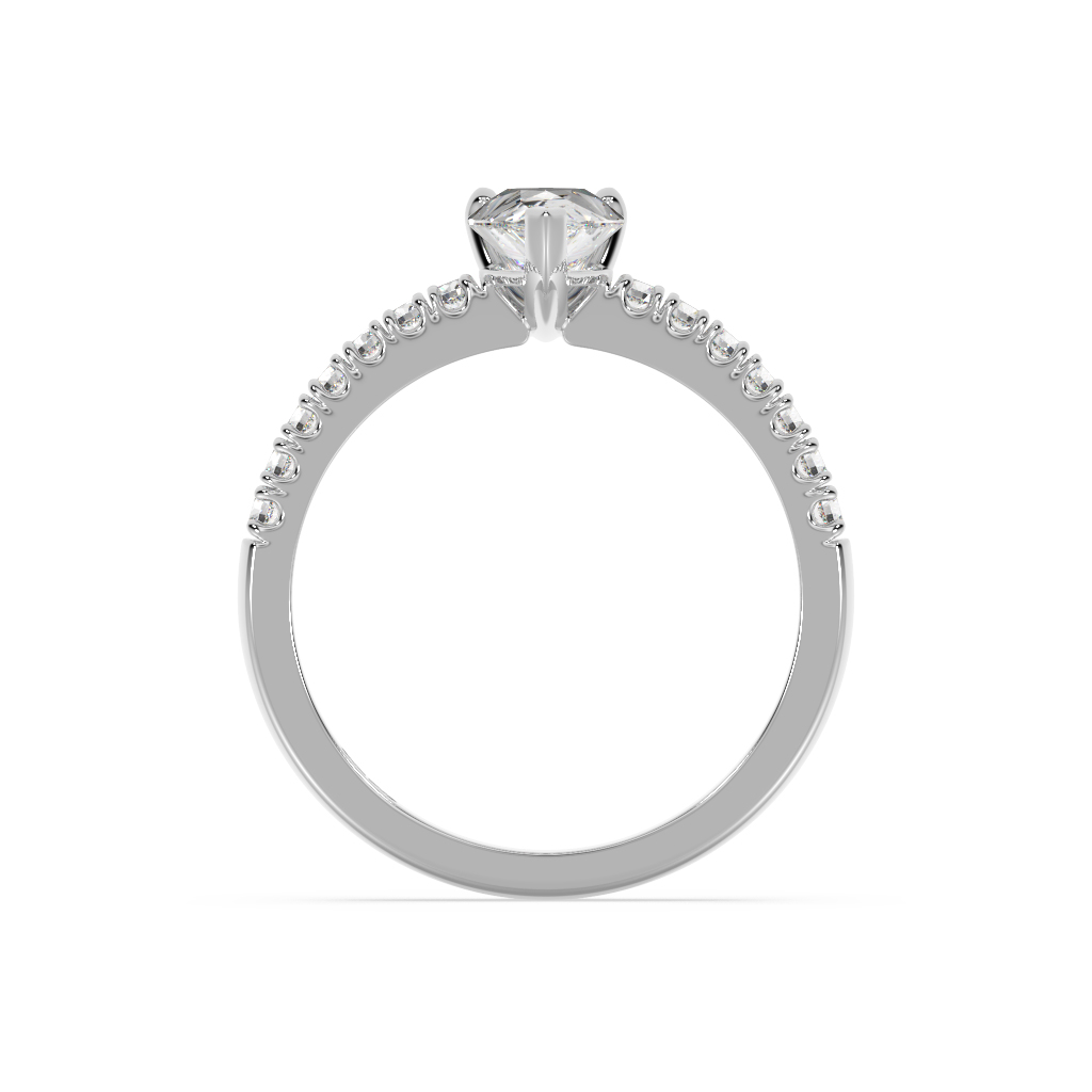 Pear shape diamond engagement ring with split shared claw shoulders