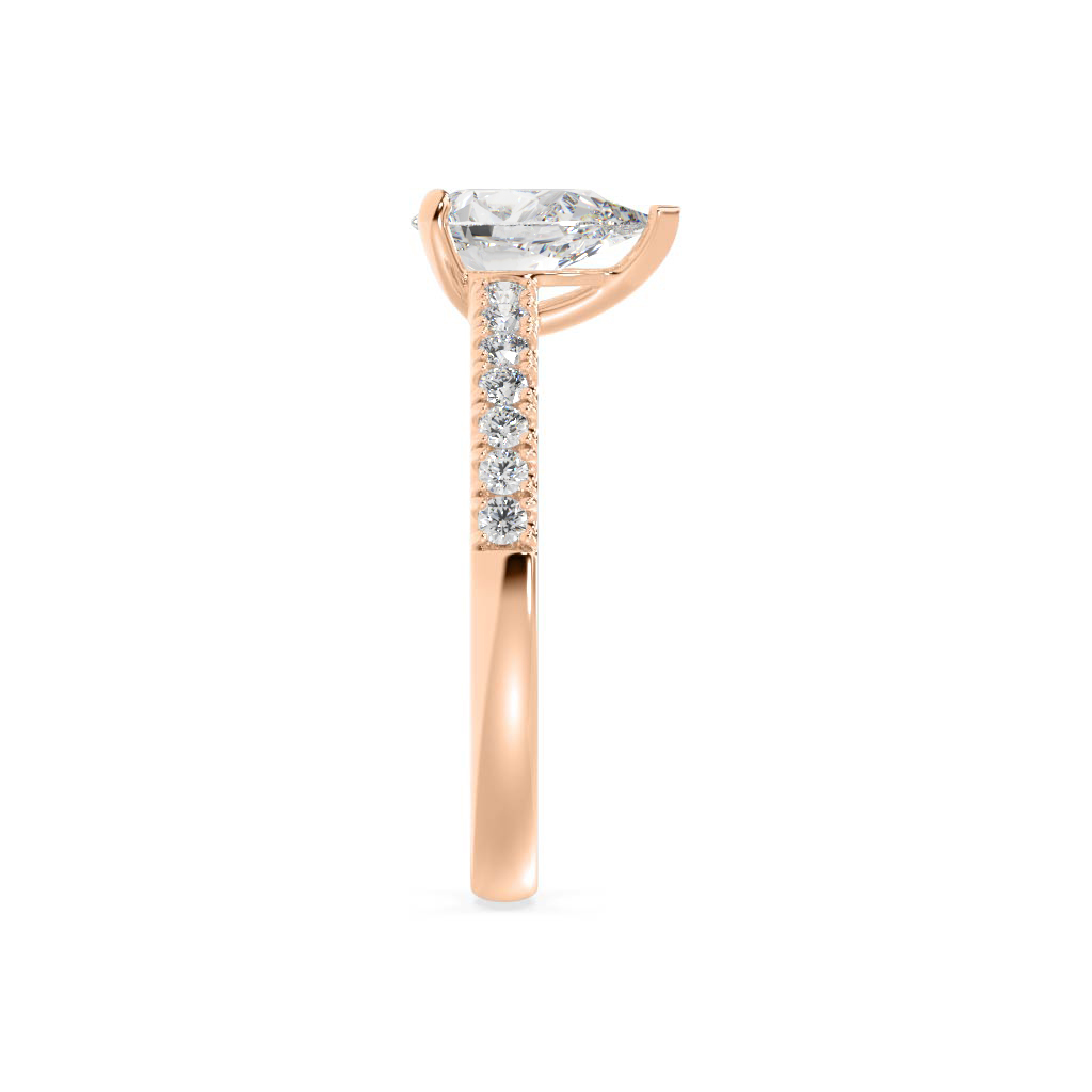 Pear shape diamond engagement ring with split shared claw shoulders