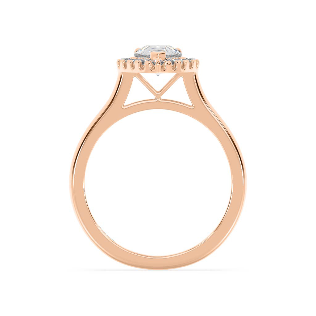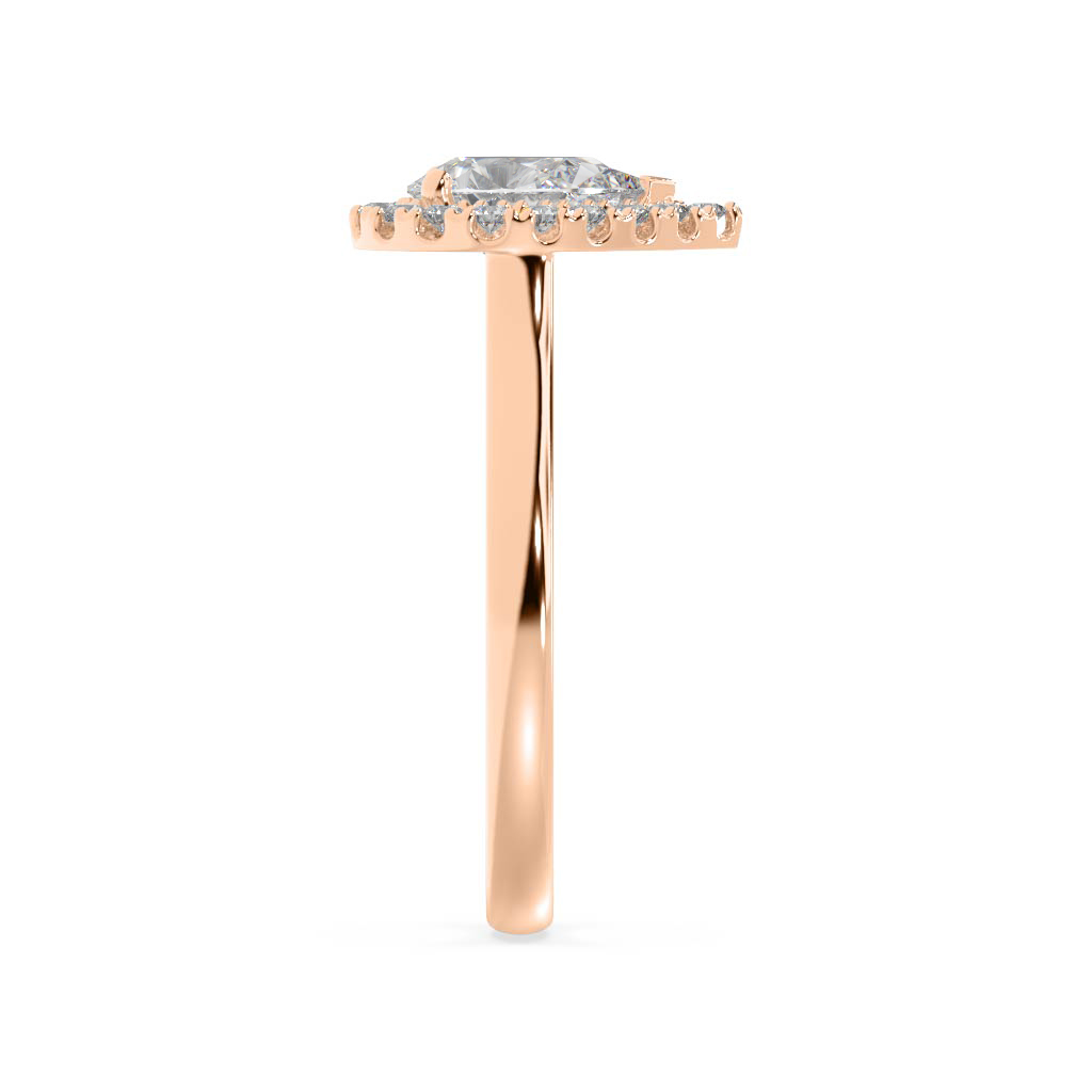 \n Pear shape diamond (1.00ct shown)\n 17 x 0.015ct round brilliant cut diamonds shared claw set into halo\n Total diamond weight = 0.25ct\n (based on 1.0ct centre diamond as shown, not including centre diamond)\n Vee style halo supports\n Half round band profile\n 2.20mm wide band\n