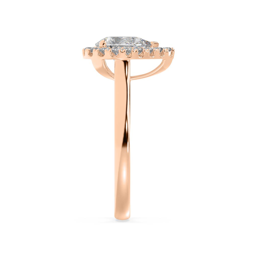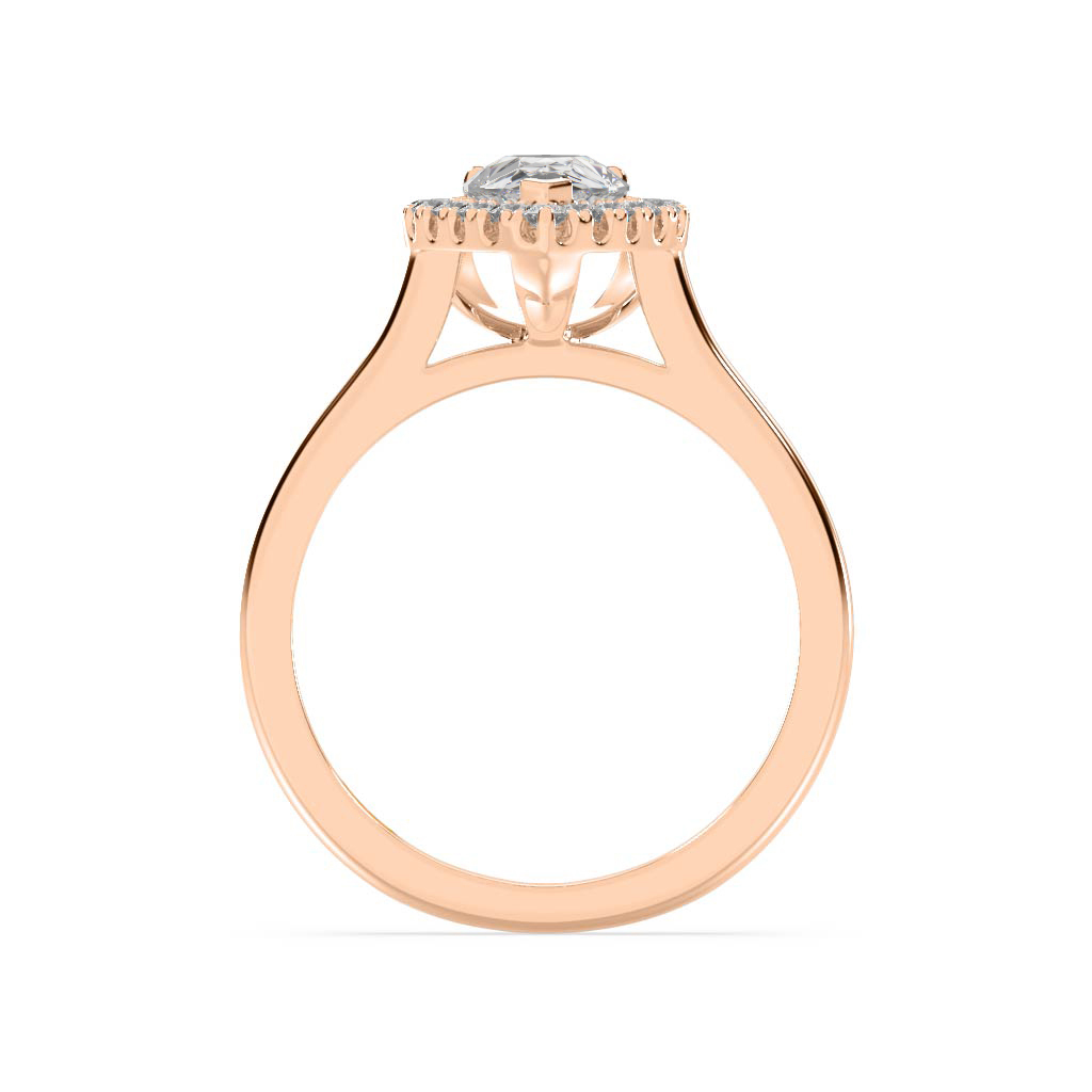\n Pear shape diamond (1.00ct shown)\n 17 x 0.015ct round brilliant cut diamonds shared claw set into halo\n Total diamond weight = 0.25ct\n (based on 1.0ct centre diamond as shown, not including centre diamond)\n Basket style halo supports\n Half round band profile\n 2.20mm wide band\n