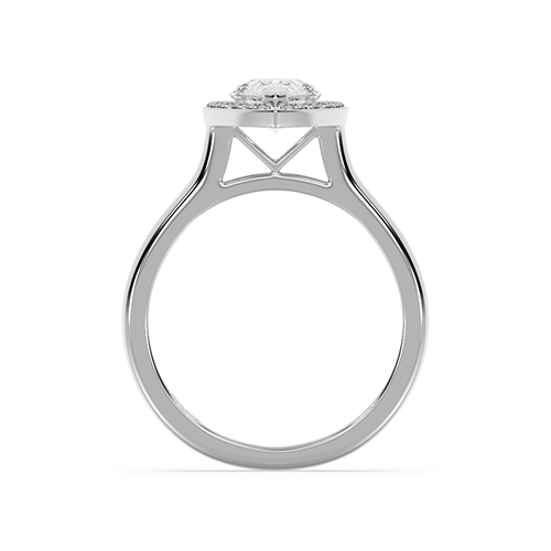 \n Pear shape diamond (1.00ct shown)\n 17 x 0.015ct round brilliant cut diamonds bead set into halo\n Total diamond weight = 0.25ct\n (based on 1.0ct centre diamond as shown, not including centre diamond)\n Vee style halo supports\n Half round band profile\n 2.20mm wide band\n