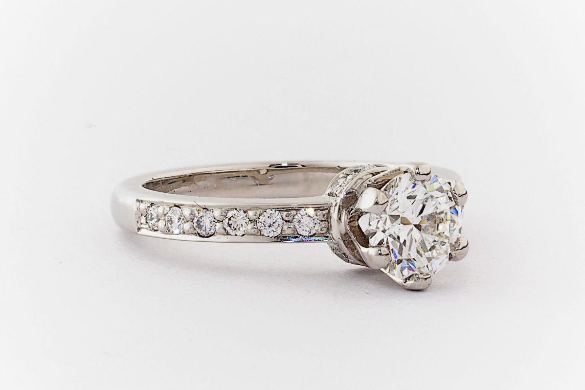 SKU: 21194-1 Category: Custom Engagement Rings Tags: 0.01ct, 0.60ct, 6 claw, bead set, platinum