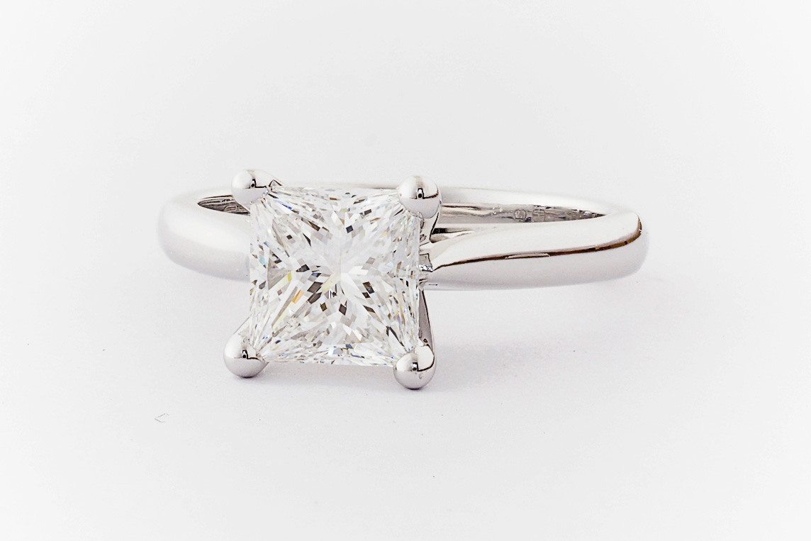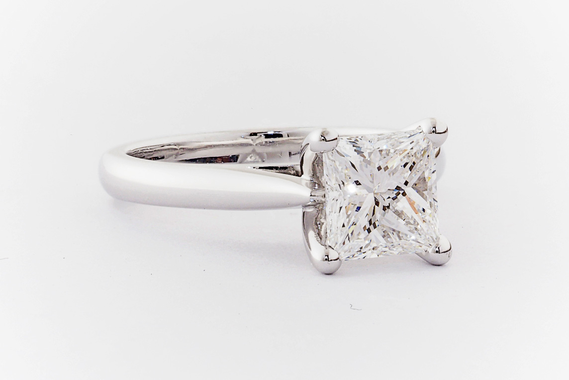 SKU: 15094-1 Category: Custom Engagement Rings Tags: 1.50ct, 4 claw, princess cut, solitaire