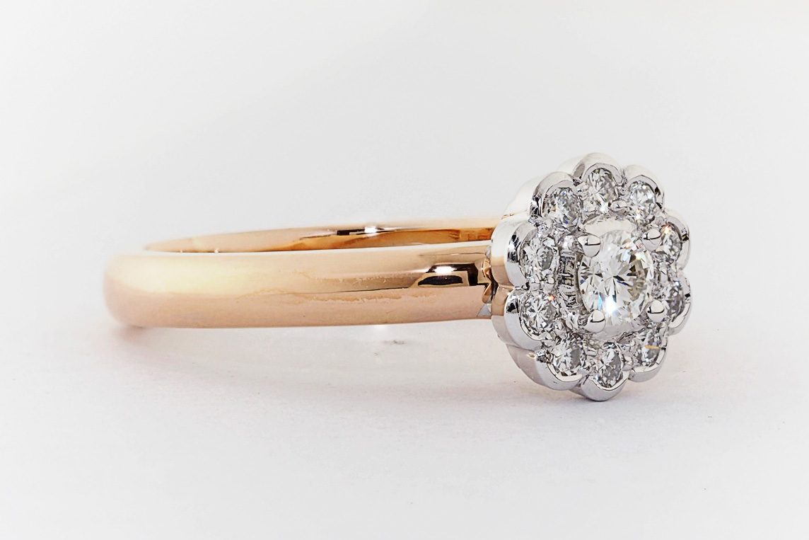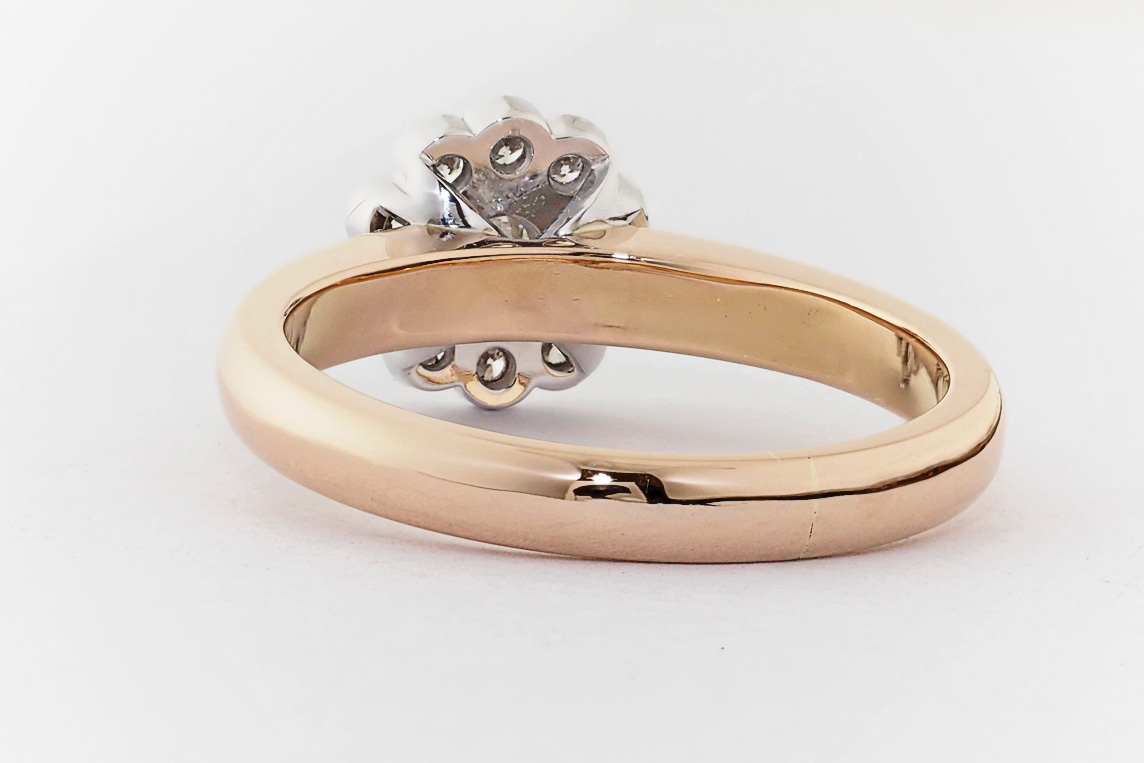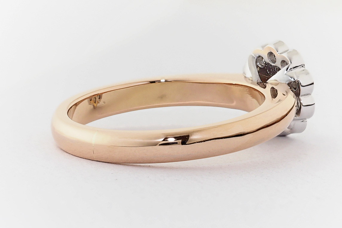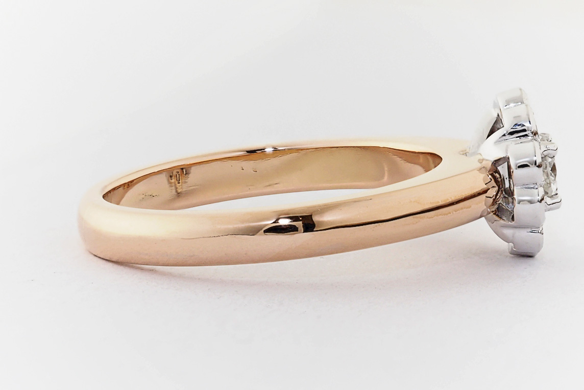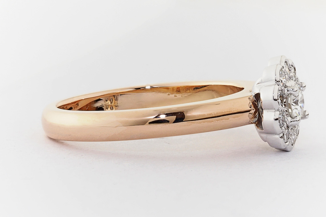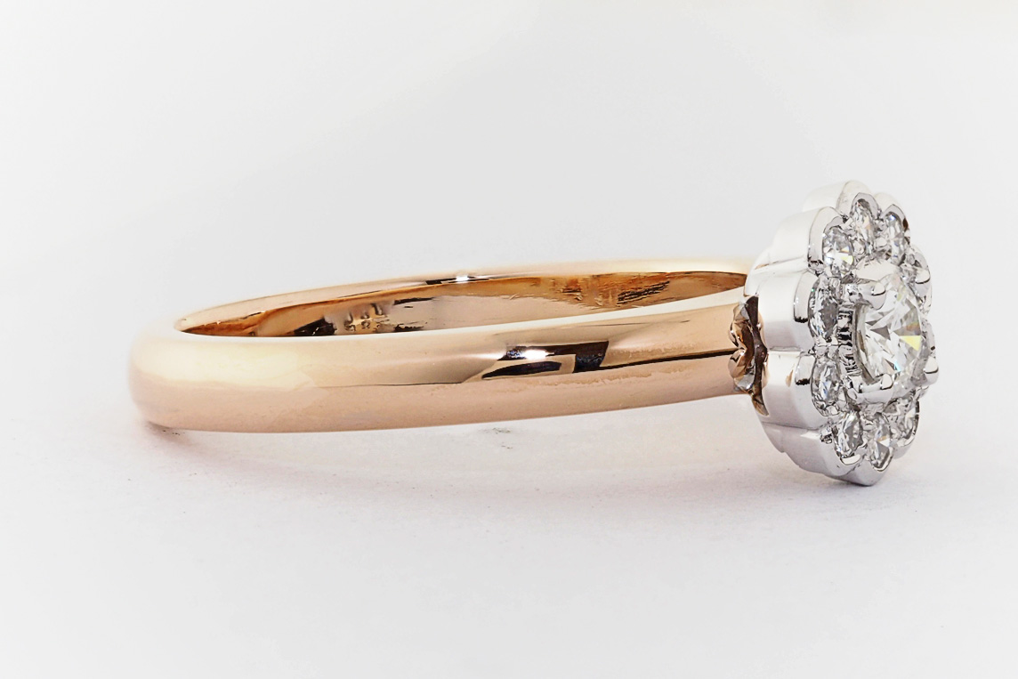 Rose and white gold halo engagement ring