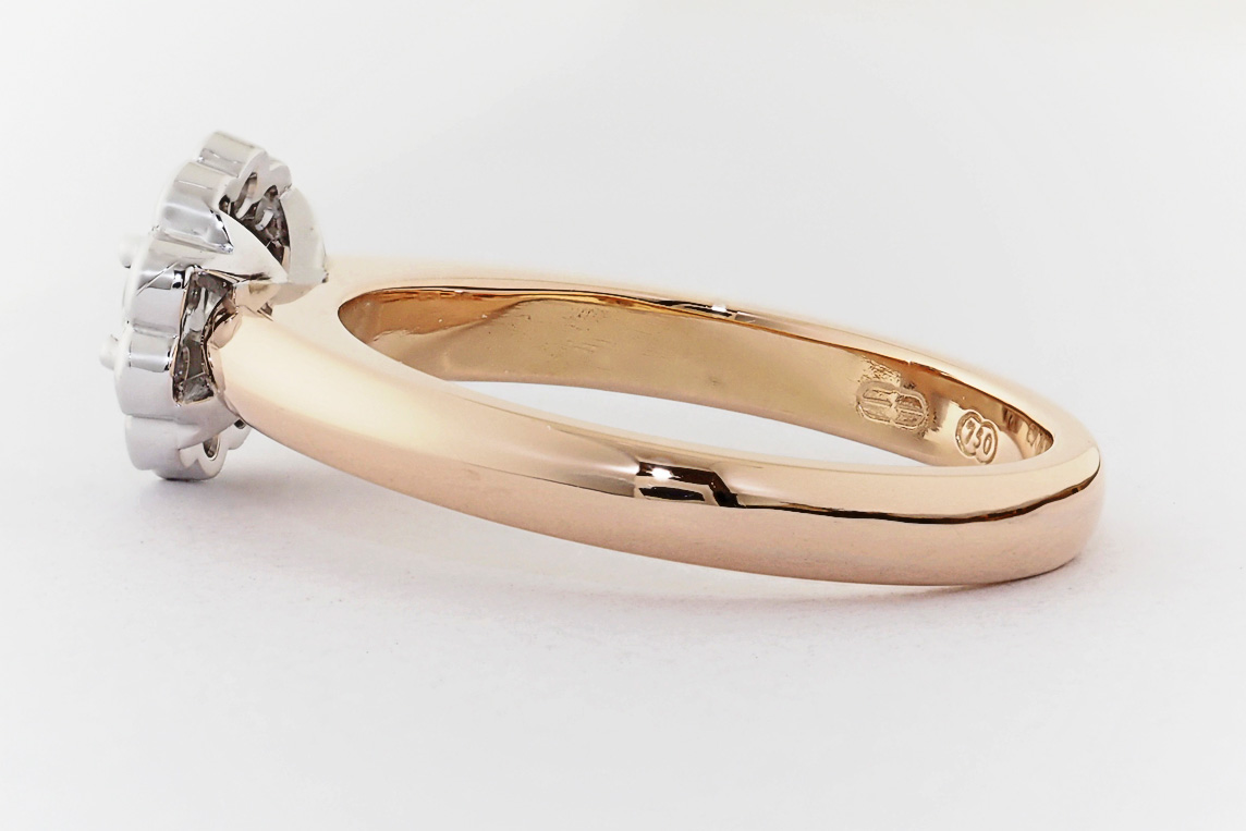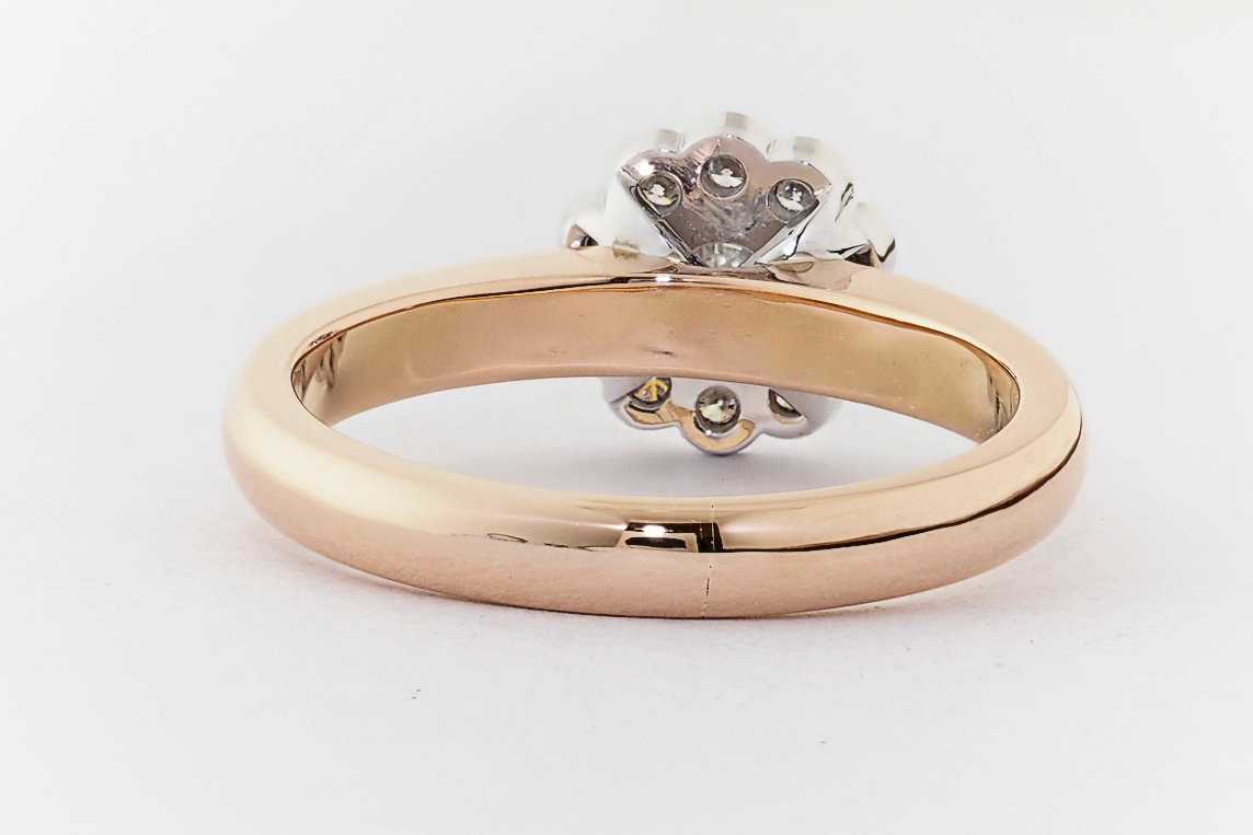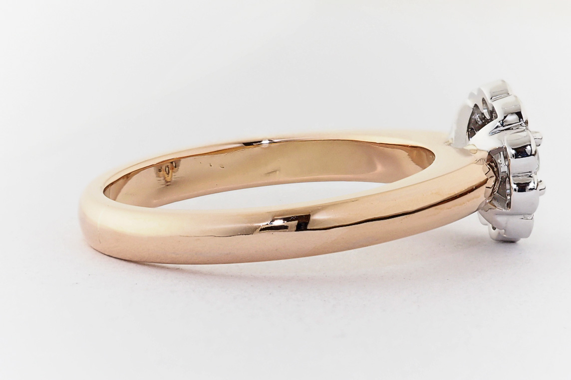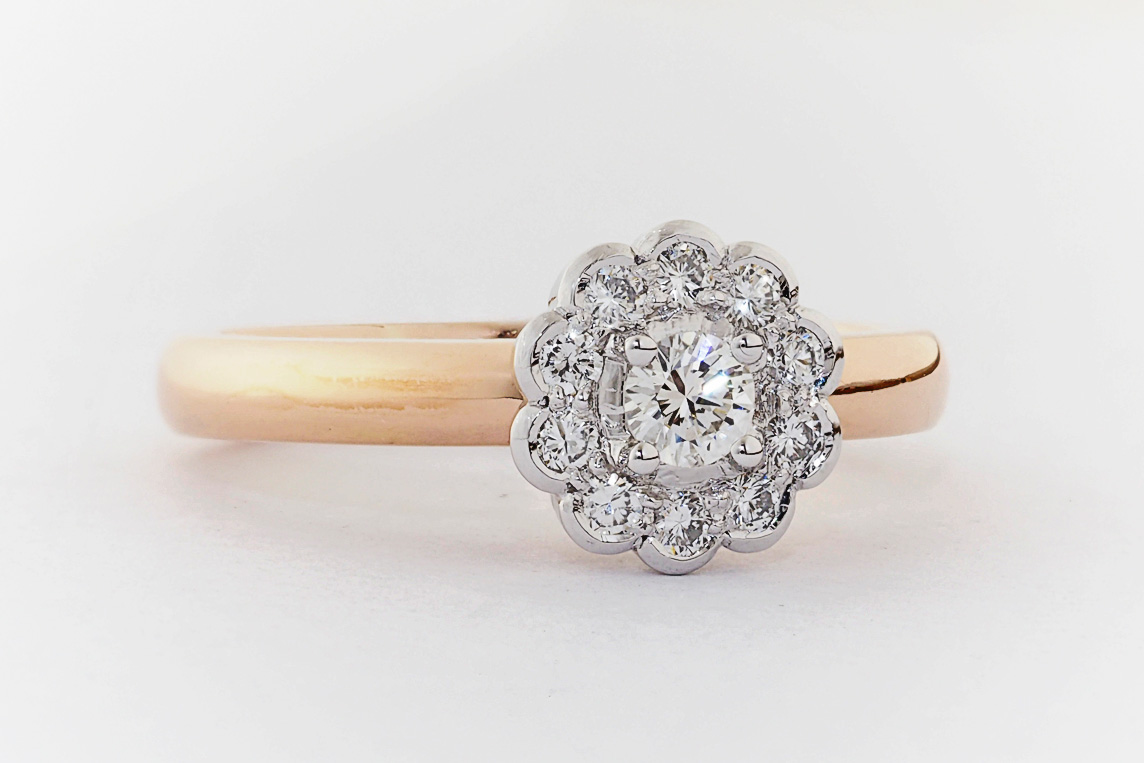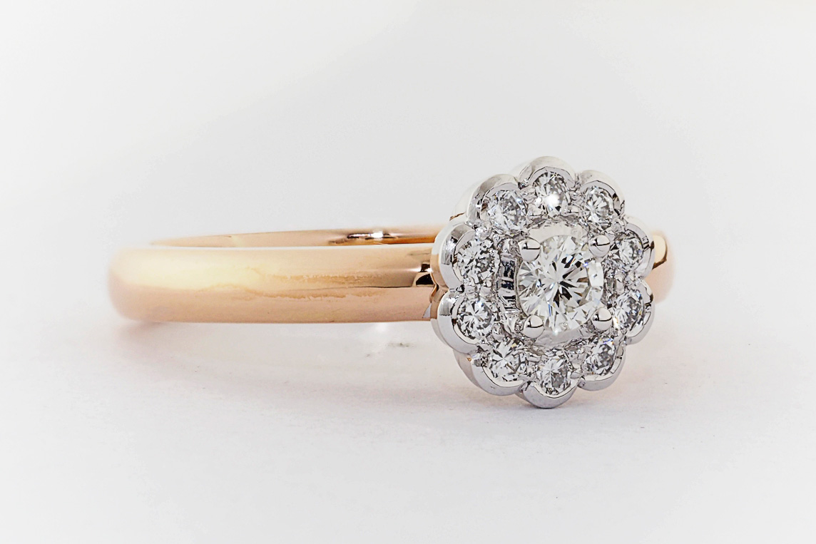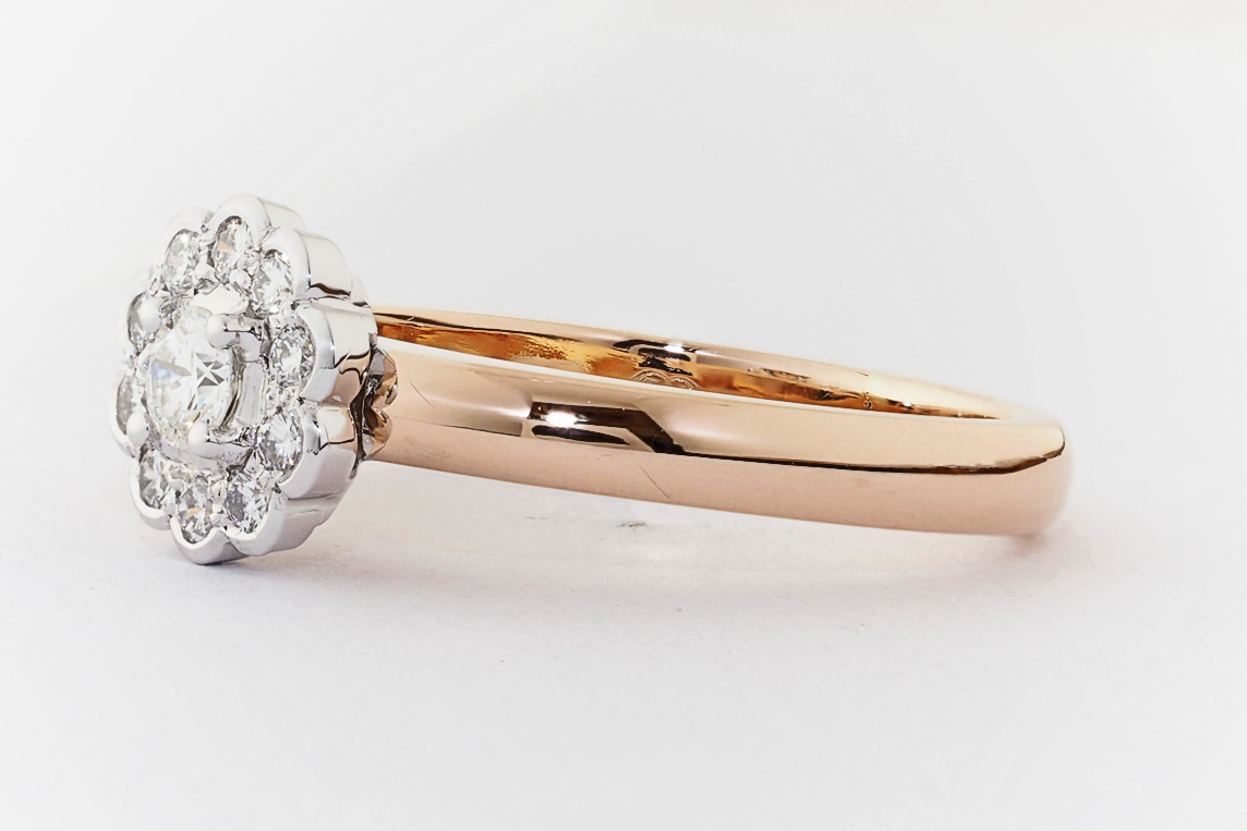 Rose and white gold halo engagement ring
