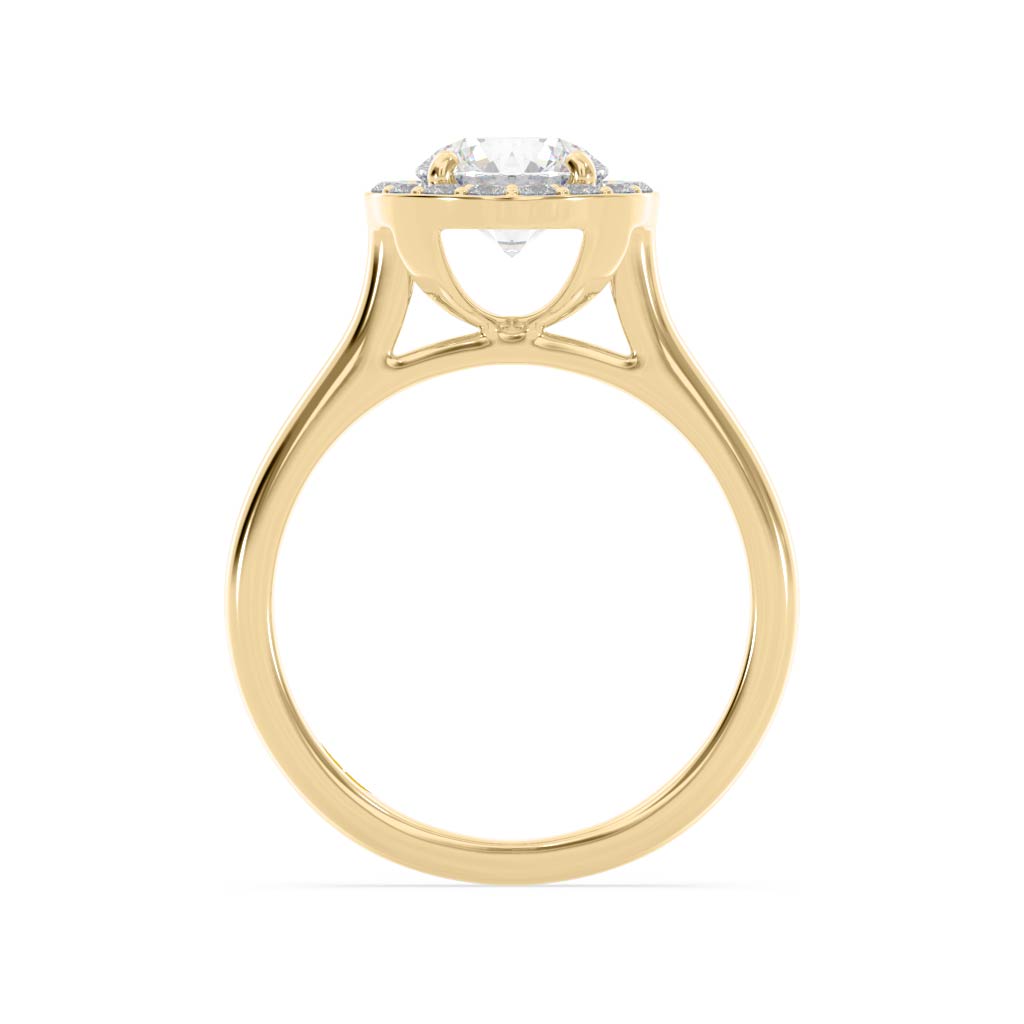 \n Round brilliant cut diamond (1.00ct shown)\n 16 x 0.015ct round brilliant cut diamonds bead set into halo\n Total diamond weight = 0.24ct\n (based on 1.0ct centre diamond as shown, not including centre diamond)\n Basket style halo supports\n Half round band profile\n 2.20mm wide band\n