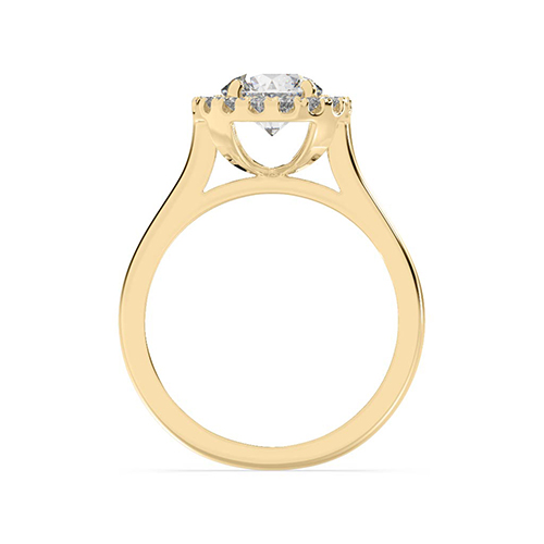 \n Round brilliant cut diamond (1.00ct shown)\n 16 x 0.015ct round brilliant cut diamonds shared claw set into halo\n Total diamond weight = 0.24ct\n (based on 1.0ct centre diamond as shown, not including centre diamond)\n Basket style halo supports\n Half round band profile\n 2.20mm wide band\n
