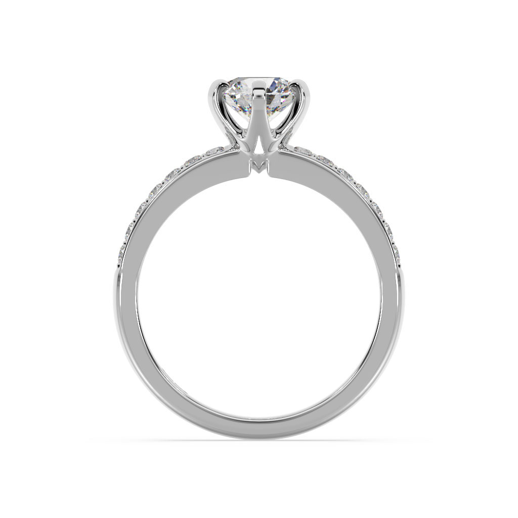 \n Round brilliant cut centre diamond (1.00ct shown)\n 6 claw goblet setting\n 14 x 0.015ct round brilliant cut diamonds\n Bead set into shoulders\n Total diamond weight = 0.21ct\n High dome band profile\n 2.20mm wide band\n