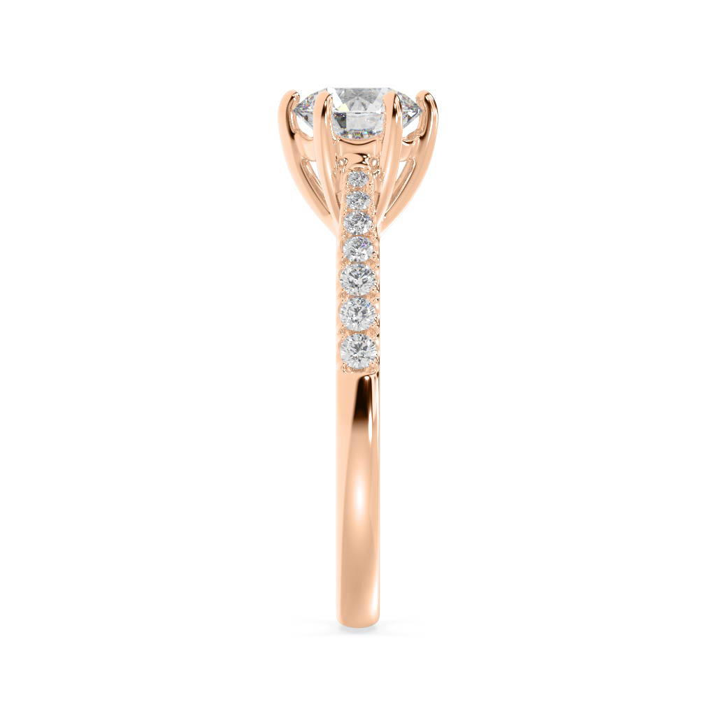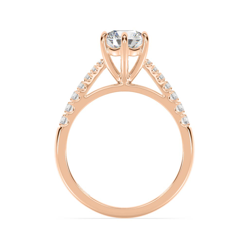 \n Round brilliant cut centre diamond (1.00ct shown)\n 6 claw goblet setting\n 14 x 0.015ct round brilliant cut diamonds\n Split shared claw set into shoulders\n Total diamond weight = 0.21ct\n Under rail style band\n High dome band profile\n 2.20mm wide band\n