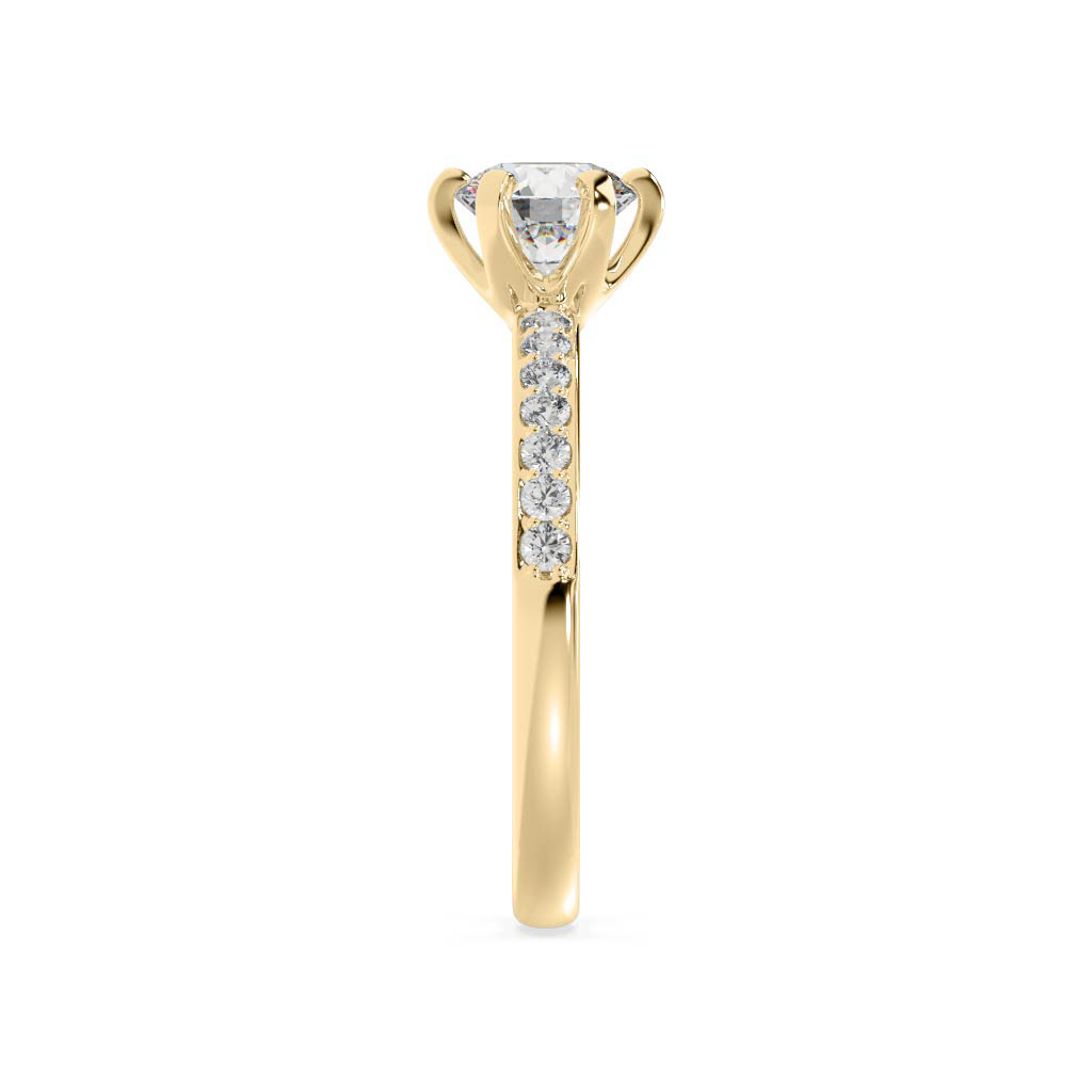 \n Round brilliant cut centre diamond (1.00ct shown)\n 6 claw goblet setting\n 14 x 0.015ct round brilliant cut diamonds\n Bead set into shoulders\n Total diamond weight = 0.21ct\n High dome band profile\n 2.20mm wide band\n