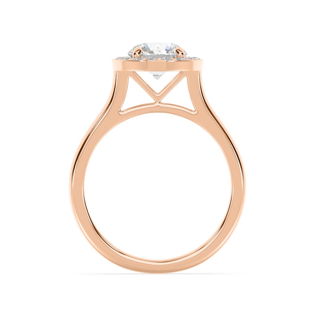 \n Round brilliant cut centre diamond (1.00ct shown)\n 16 x 0.015ct round brilliant cut diamonds bead set into halo\n Total diamond weight = 0.24ct (based on 1.0ct centre diamond as shown, not including centre diamond)\n Vee style halo supports\n Half round band profile\n 2.20mm wide band\n