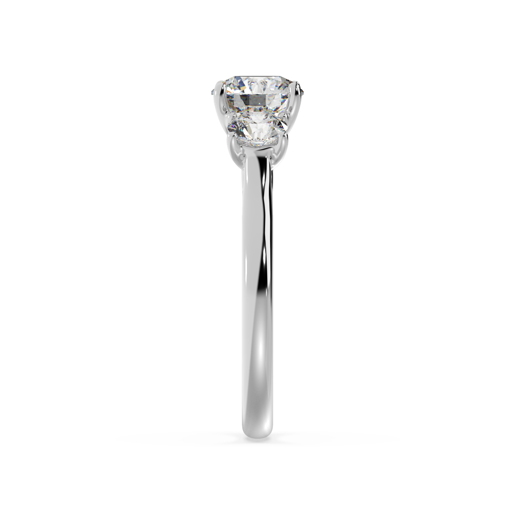 \n Round brilliant cut diamond (1.00ct shown)\n Centre diamond in 4 claw setting\n 2 round brilliant cut diamonds (2 x 0.30ct shown)\n Side diamonds in 4 claw settings with under bearing\n Half round band profile\n 2.20mm wide band\n