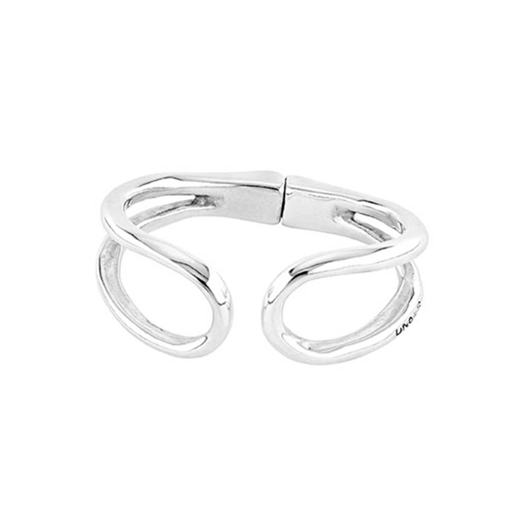 A unique silhouette with bohemian styling that respects the iconic design of UNOde50. Silver-plated and hinged design make this bracelet not only stylish but comfortable to wear.