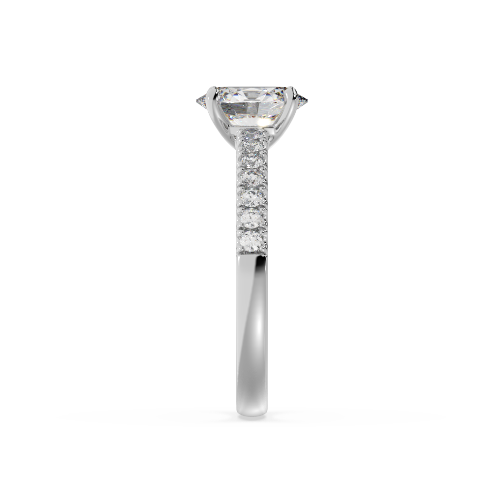 White gold engagement ring with oval diamond and split shared claw shoulders