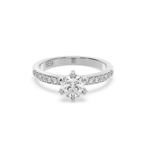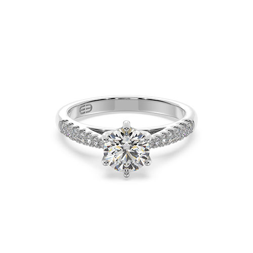 Round brilliant cut 6 claw solitaire engagement ring with under rail