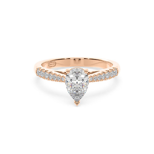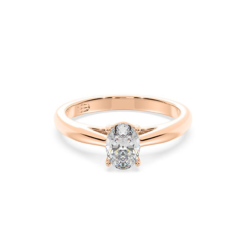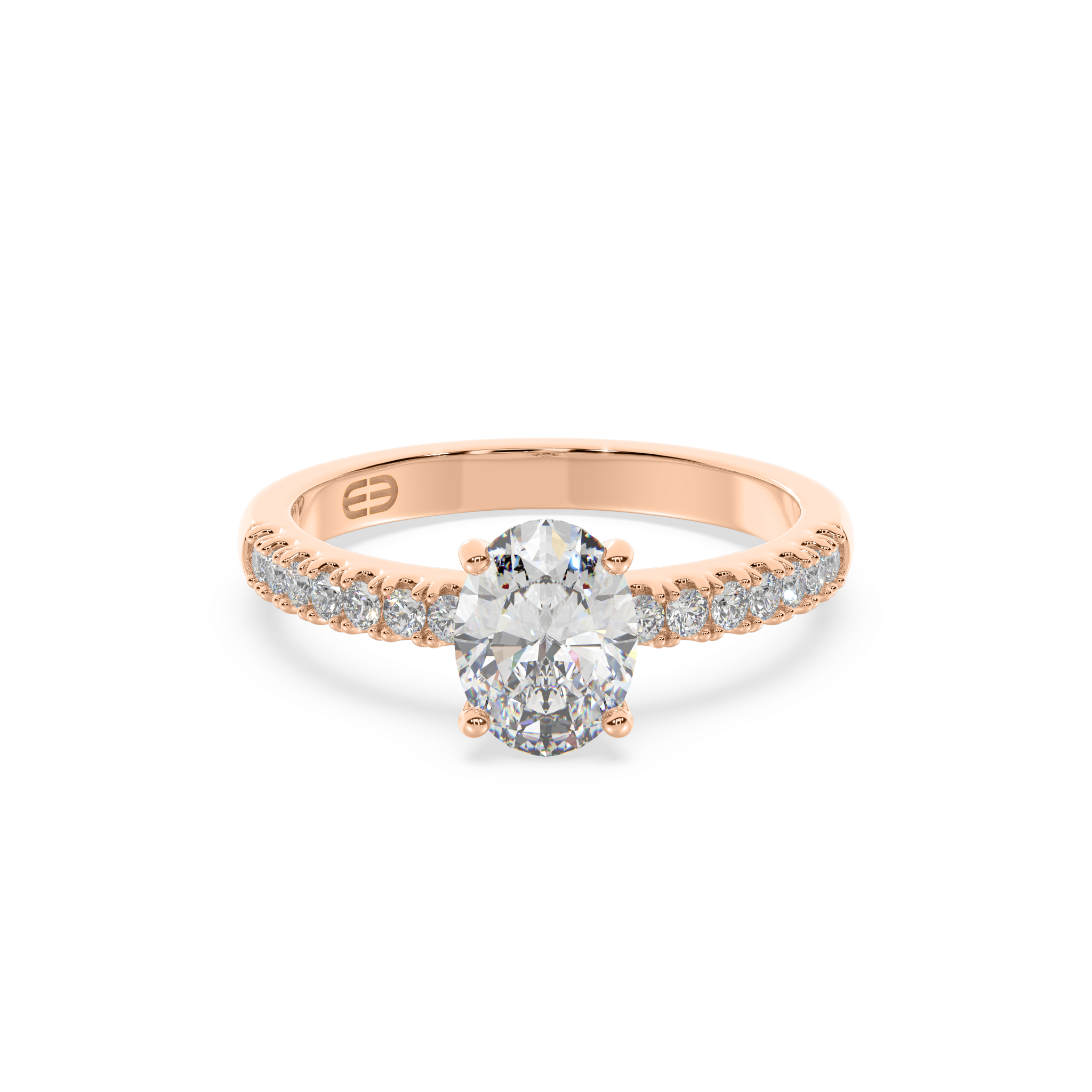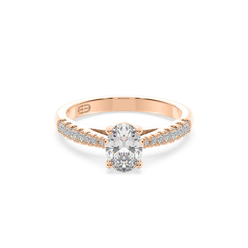 Rose gold engagement ring with oval diamond and split shared claw shoulders