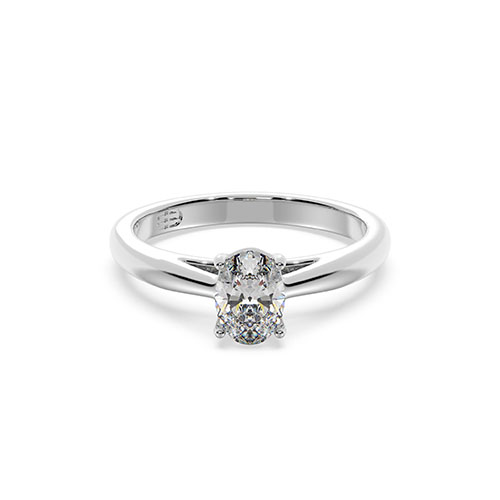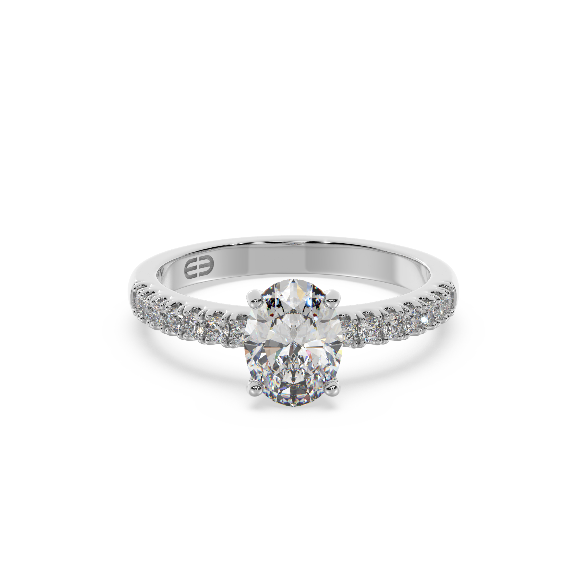 Platinum gold engagement ring with oval diamond and split shared claw shoulders