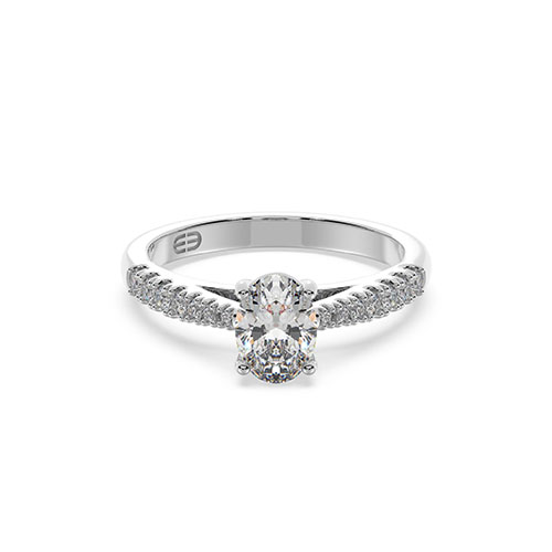 White gold engagement ring with oval diamond and split shared claw shoulders