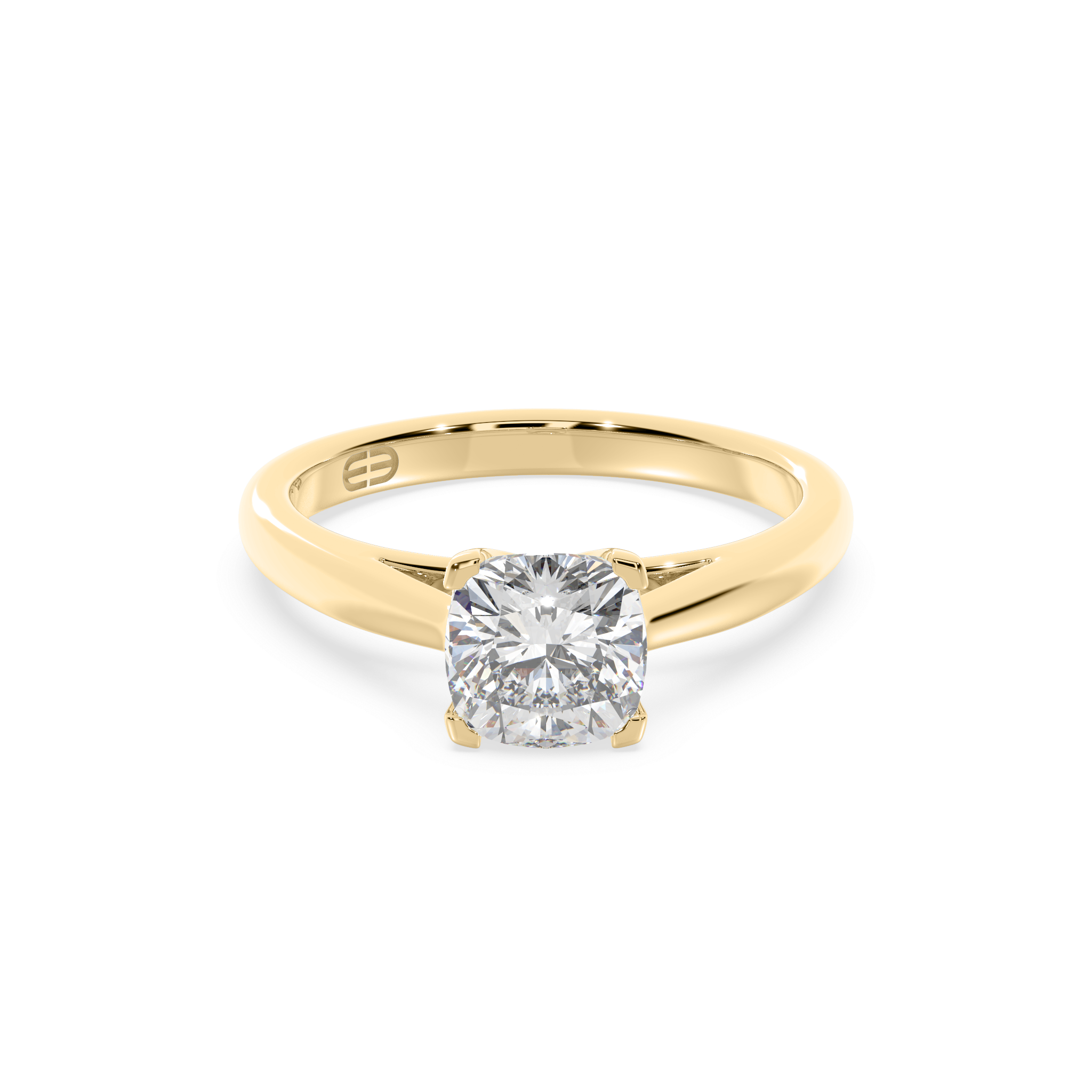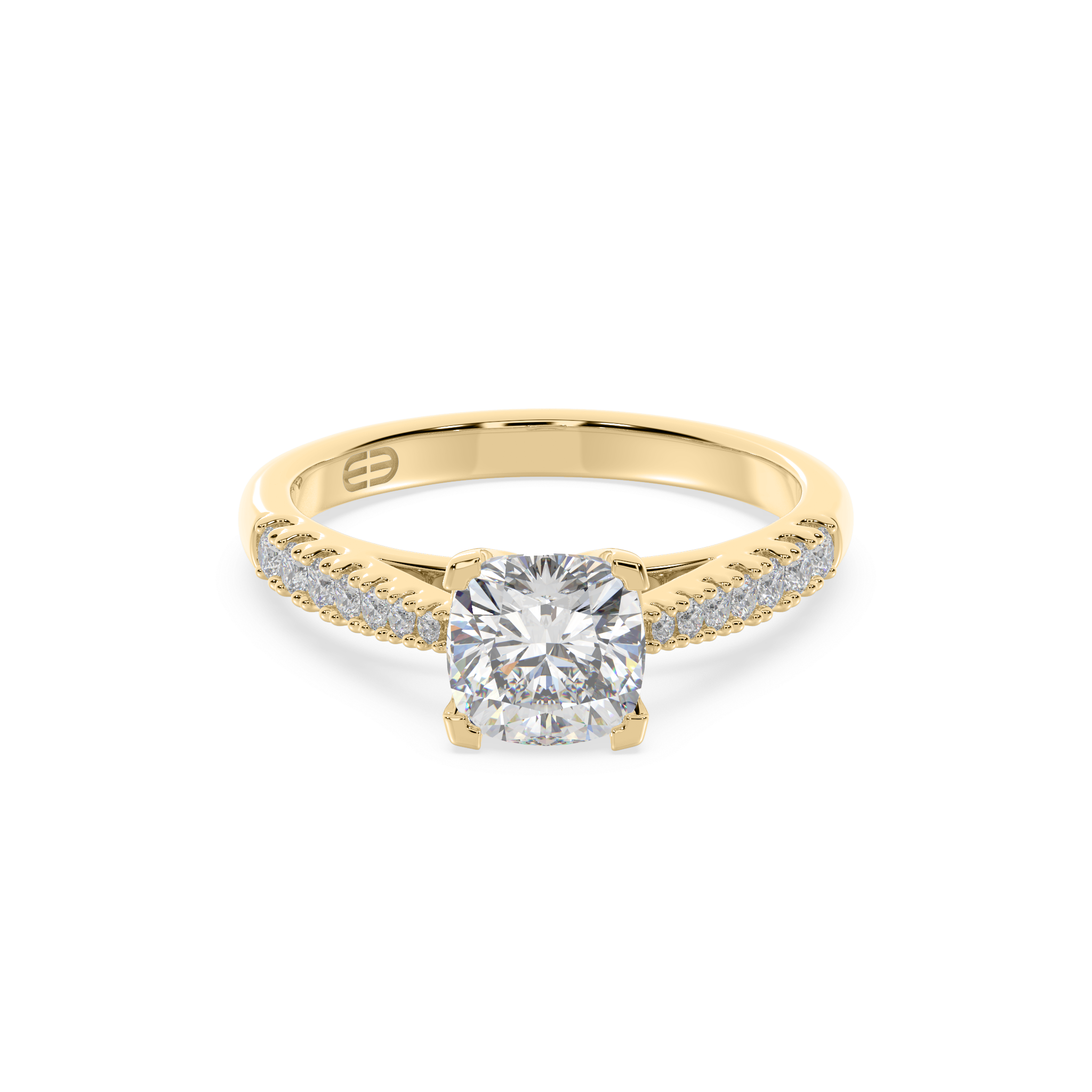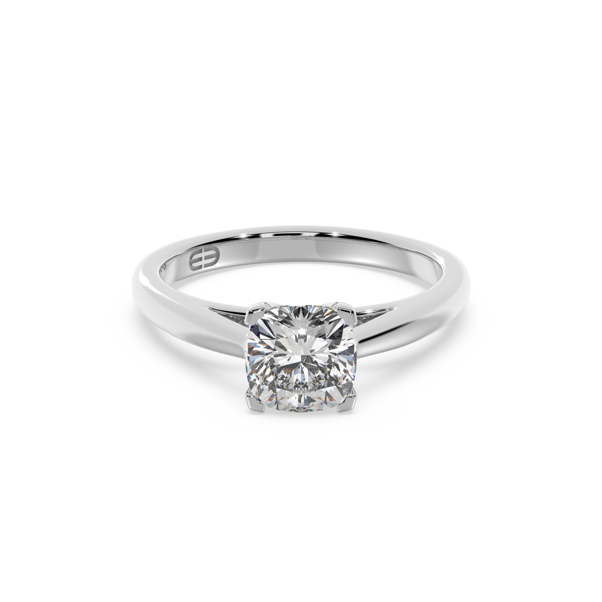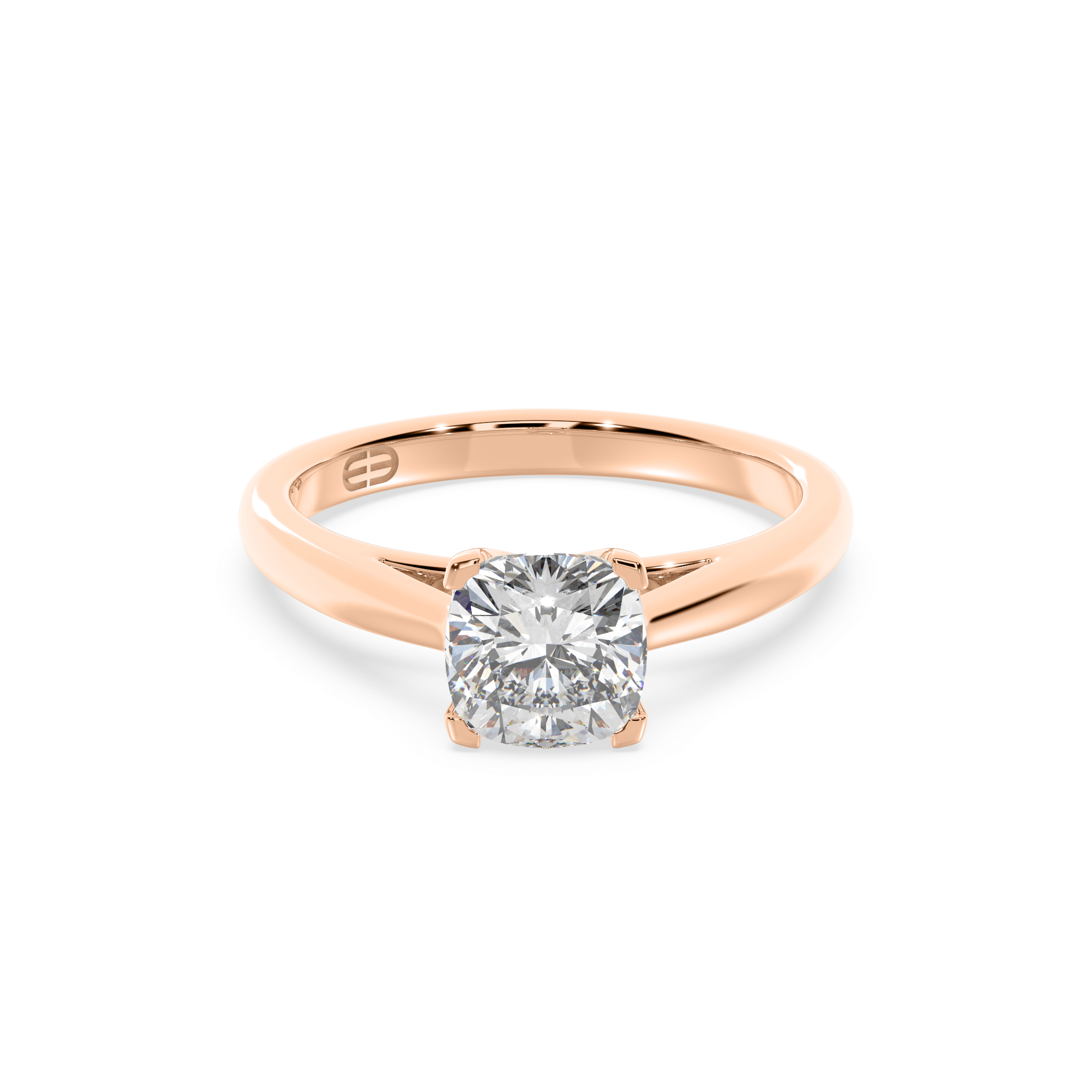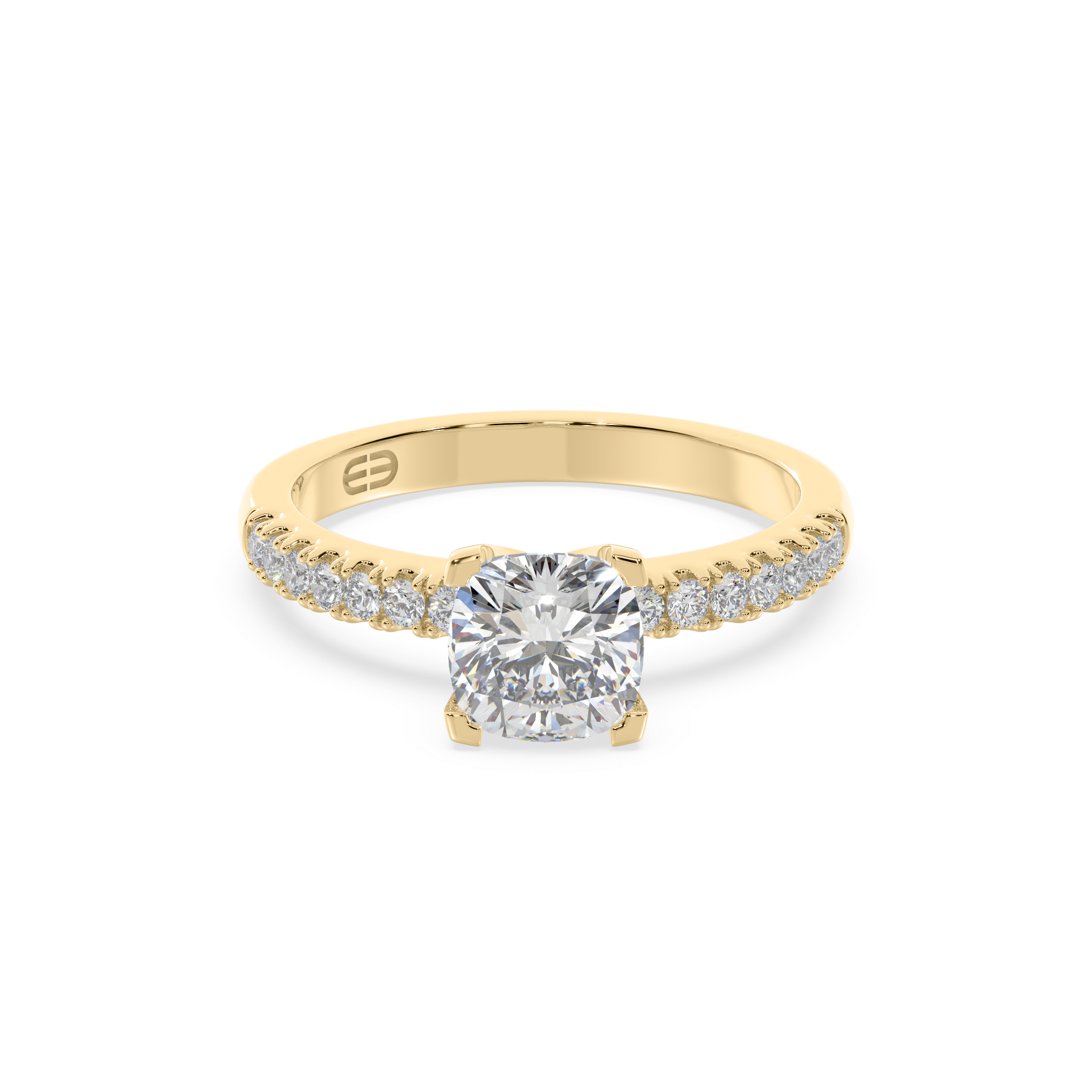 Cushion diamond engagement ring with tapered split shared claw shoulders